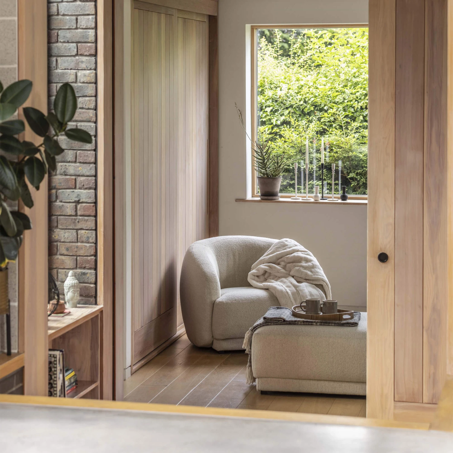 This opulent armchair is organic in shape and completely covered in a contemporary, off-white coloured textured fabric, designed to fit in well with both modern and traditional home interiors, whilst bringing a touch of texture and contemporary flair to your space.