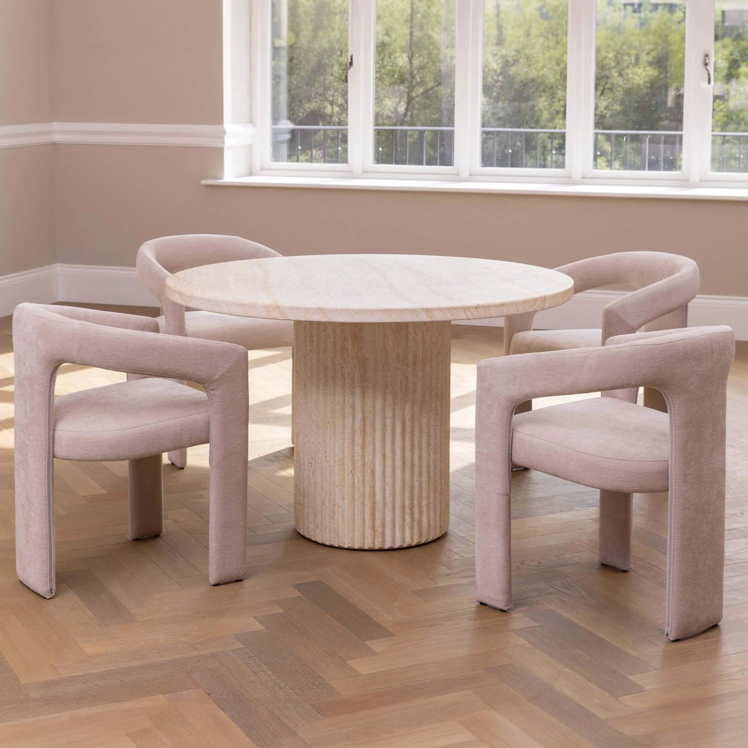 Albana 120cm Round Travertine Effect Dining Table