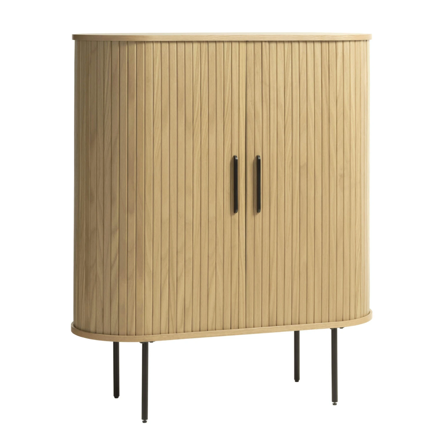 A natural tone cabinet featuring a vertical panel design with curved edges for a sleek Scandinavian style. Crafted with shelving for plenty of storage to keep your home tidy, This display cabinet also creates a beautiful space to accessorise while keeping your documents, spare glassware or living room accessories tidy.