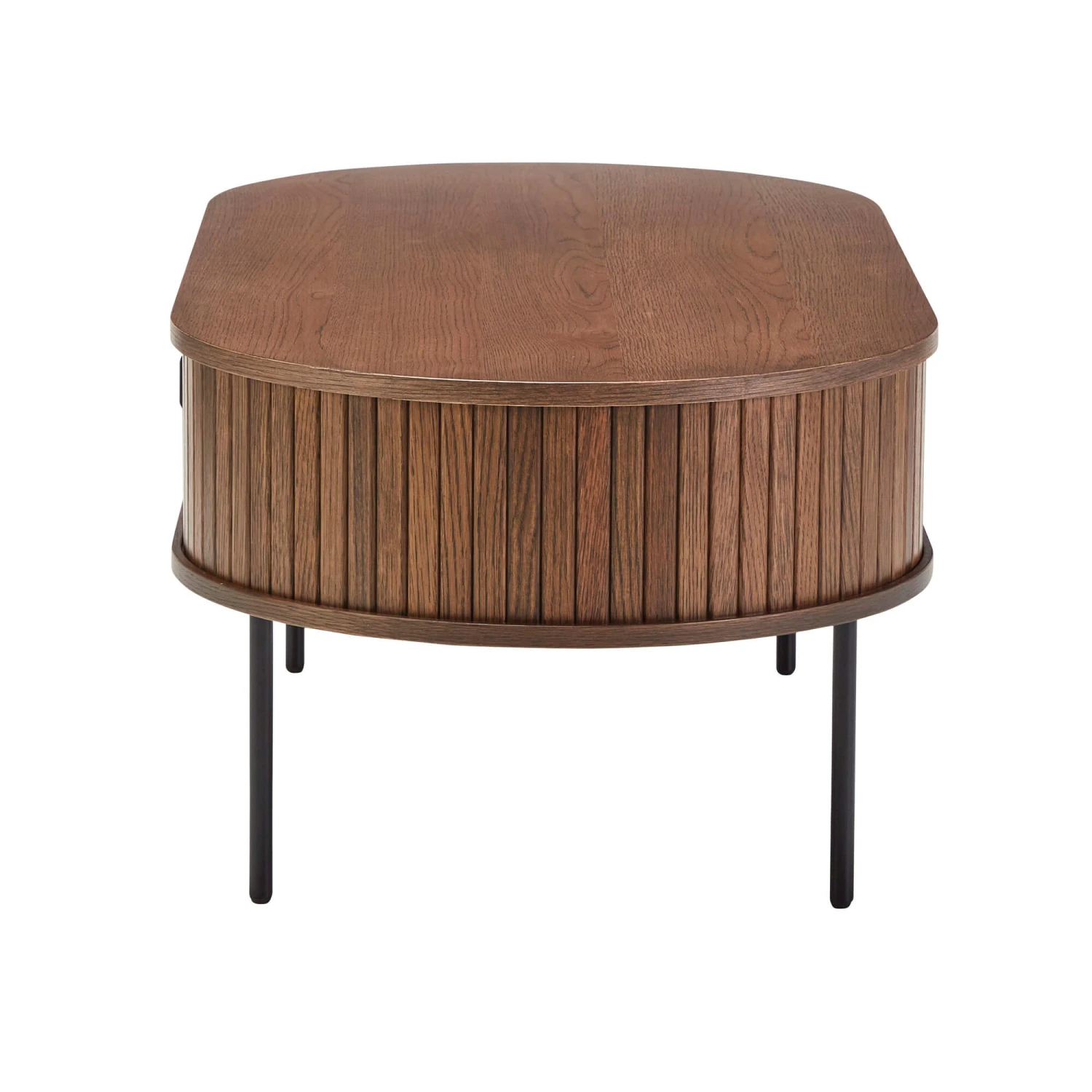 The sliding mechanism allows the doors to open all the way so you can access and make full use of the hidden storage space on offer and the simplistic, matte black metal handles and legs give this piece its attractive, contemporary urban edge. Accompanied with its soft, rounded edges and overall sleek profile, the Annika Coffee Table provides a practical storage solution, without compromising on design.