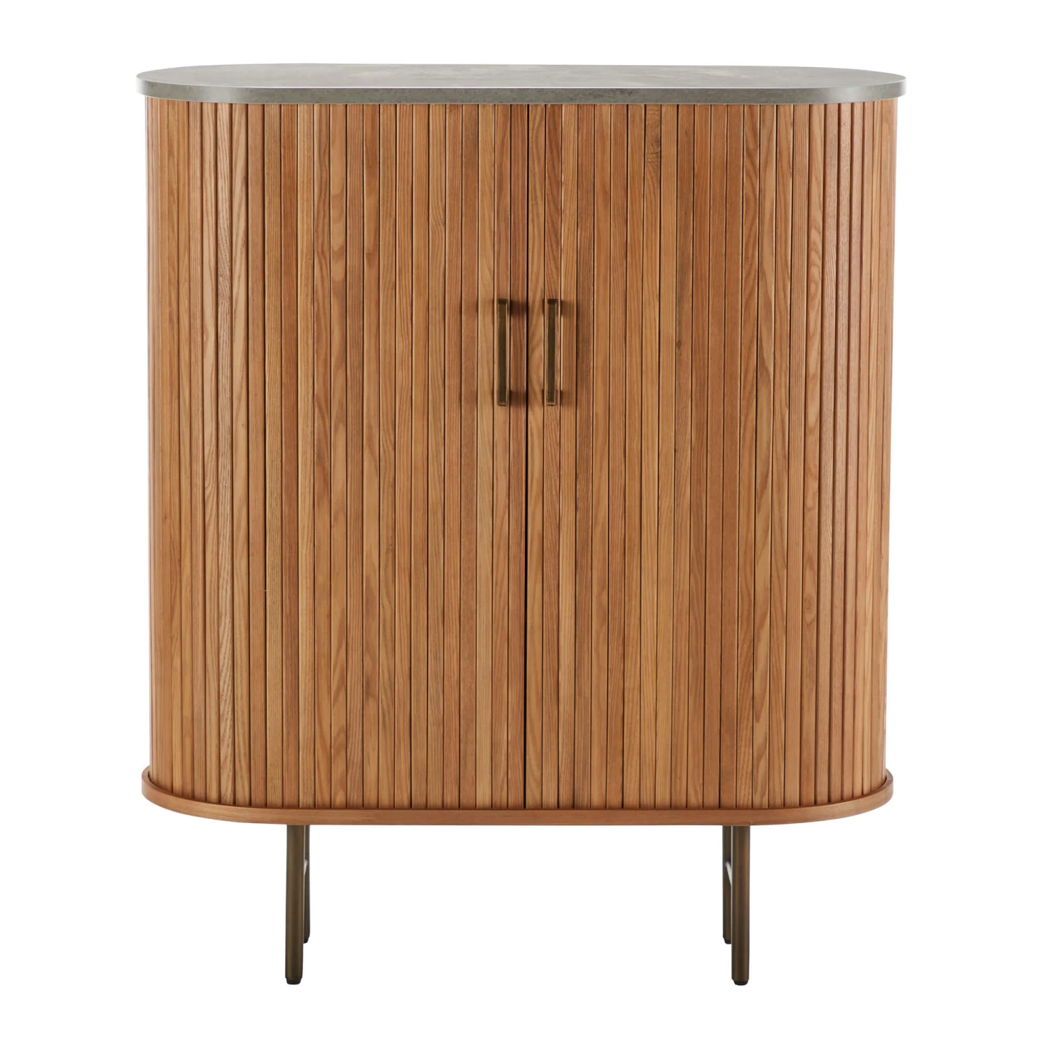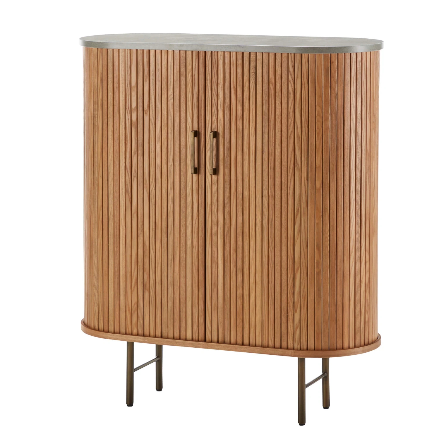 A natural tone cabinet featuring a vertical panel design with curved edges for a sleek Scandinavian style. Crafted with shelving for plenty of storage to keep your home tidy, This display cabinet also creates a beautiful space to accessorise while keeping your documents, spare glassware or living room accessories tidy.