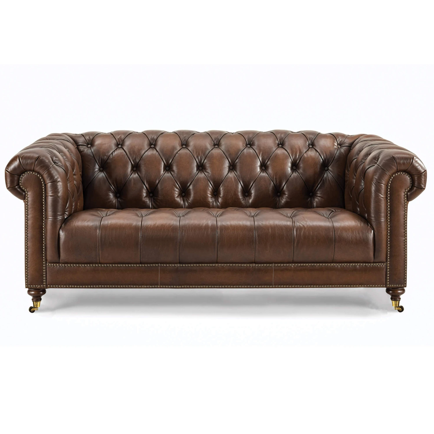 Accompanied with its subtle pleating accentuating the curvature of the armrests, opulent stud detailing and lavish tabac coloured vintage leather upholstery, the Balmoral 3 Seater Sofa is sure to bring an element of fine living to any interior with its striking, extravagant aesthetic.