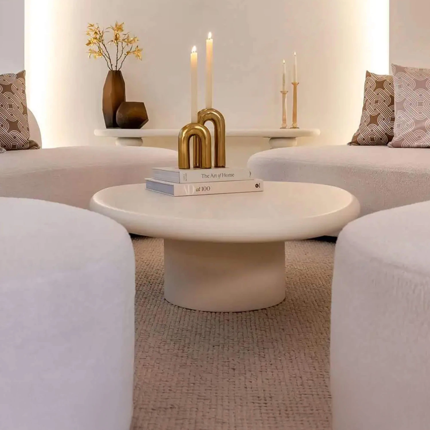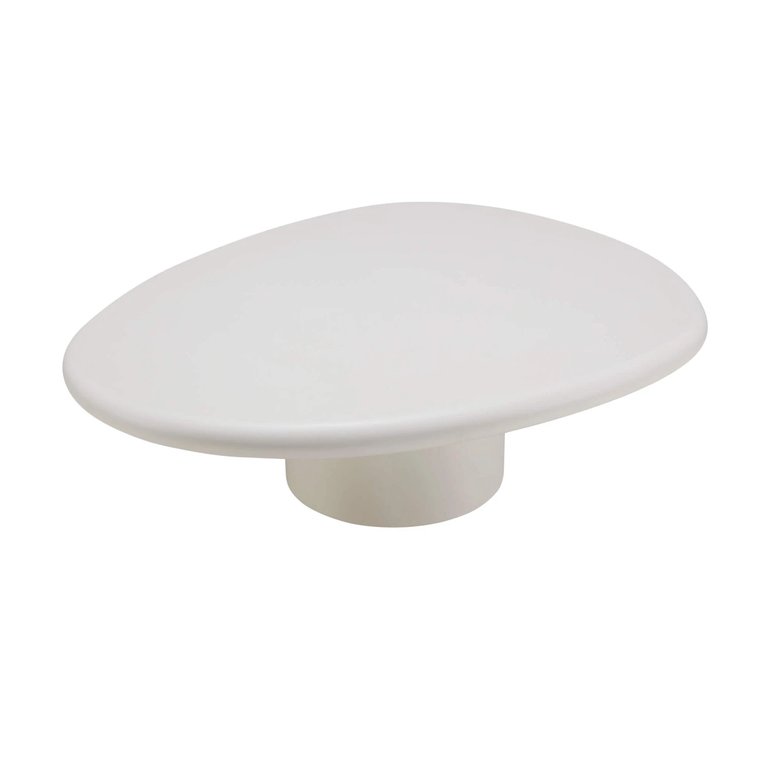Its distinctive organic silhouette, inspired by the smooth contours of a pebble, creates a sense of natural flow and harmony. Finished in a light-toned white plaster, the table exudes a fresh, contemporary charm while maintaining a subtle, understated presence. The curved shape not only adds visual interest but also softens the overall look, making it an inviting addition to any living room.