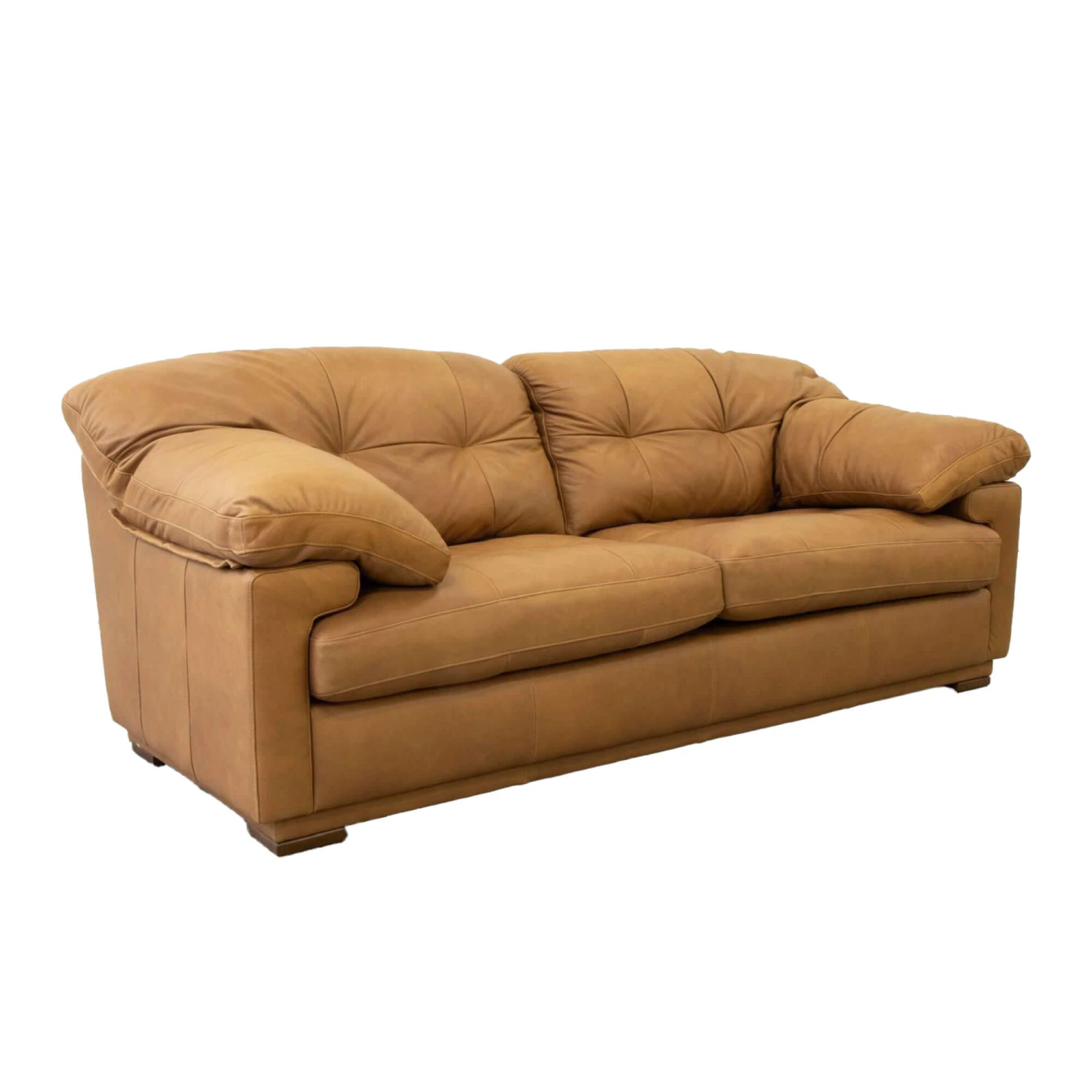 The Bramley Soul Camel Leather 3 Seater Sofa offers a perfect blend of classic elegance, comfort and craftsmanship. Upholstered in a soul camel leather, the Bramley features generously padded cushions for lasting comfort, plush pillow-top arms offering extra support for the ultimate relaxation, tufted detailed back cushions to add depth and sturdy dark brown wooden legs to provide stability, creating a warm and luxurious piece.