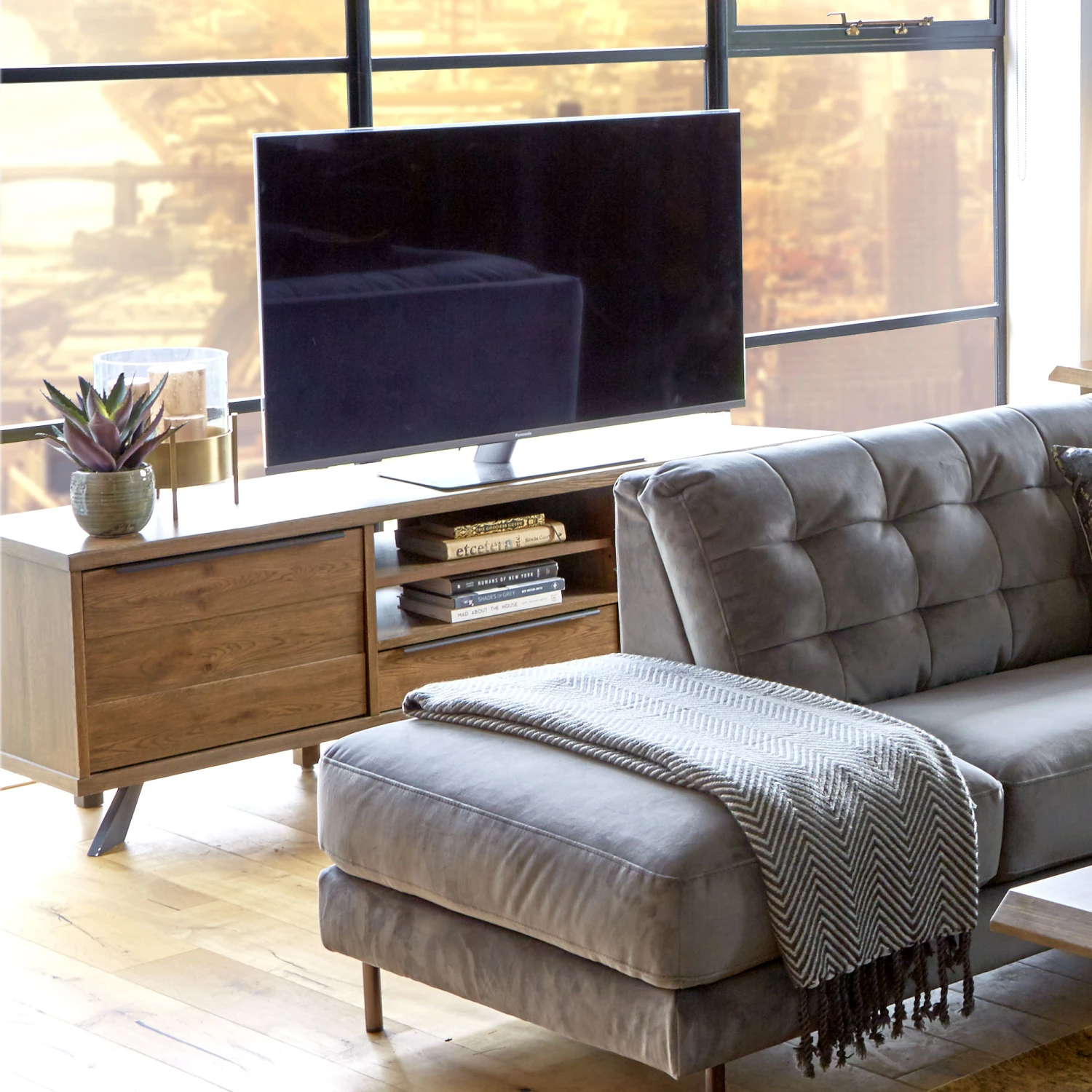The Bronx TV Lowboard features two spacious cupboards and a drawer, perfect for added storage whilst the inset open shelves are ideal for keeping TV boxes and games consoles easily accessible.