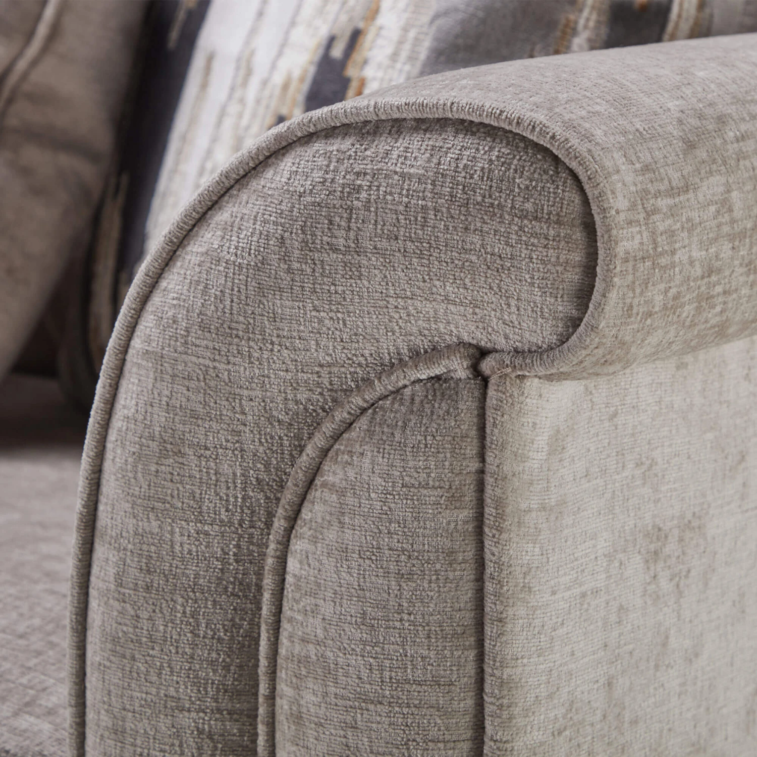 With smooth lines and geometric shapes inspired by the interiors of the art deco era, the Buxton Grand Sofa will add an enduring and sophisticated touch to any home. Combining luxurious comfort with opulent sophistication and style, upholstered in a sumptuous grey fabric with geometric accents, in a palette of complementing metallic hues. Handcrafted in Britain, the Buxton sofa inherits the hallmarks of high quality, meticulous detailing that we associate with the best of British manufacturing. Gently curved armrests give a classic feel to the sofa, whilst detailed solid oak legs with satin nickel castors complete the timeless aesthetic beautifully.