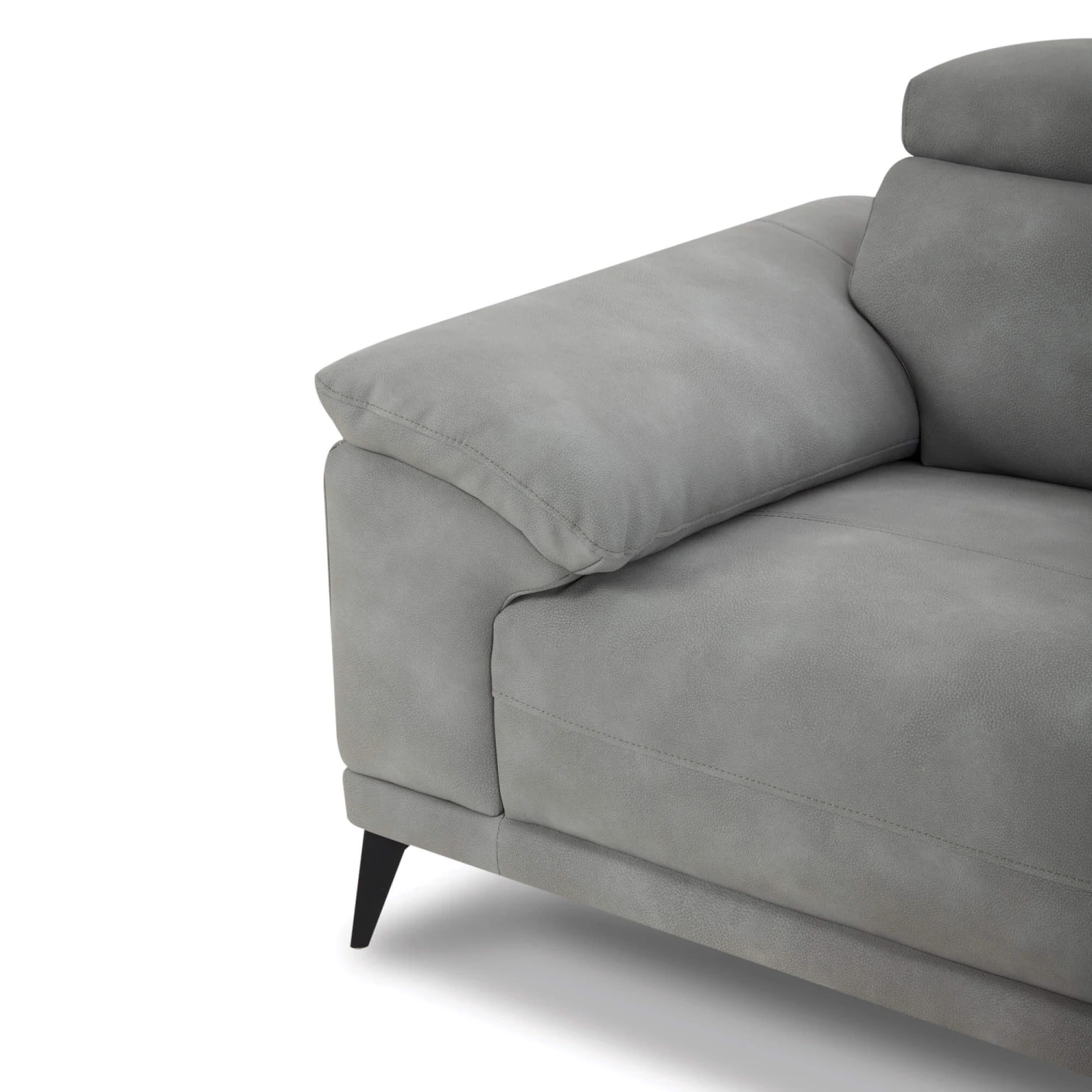 A foam and fibre mix seat, back and arm interior provides superior comfort. The gently sloping curve of the deep, padded armrest, manually adjustable headrests and foam and fibre mix interior work harmoniously together to lend this sofa an extremely comfortable seating experience.