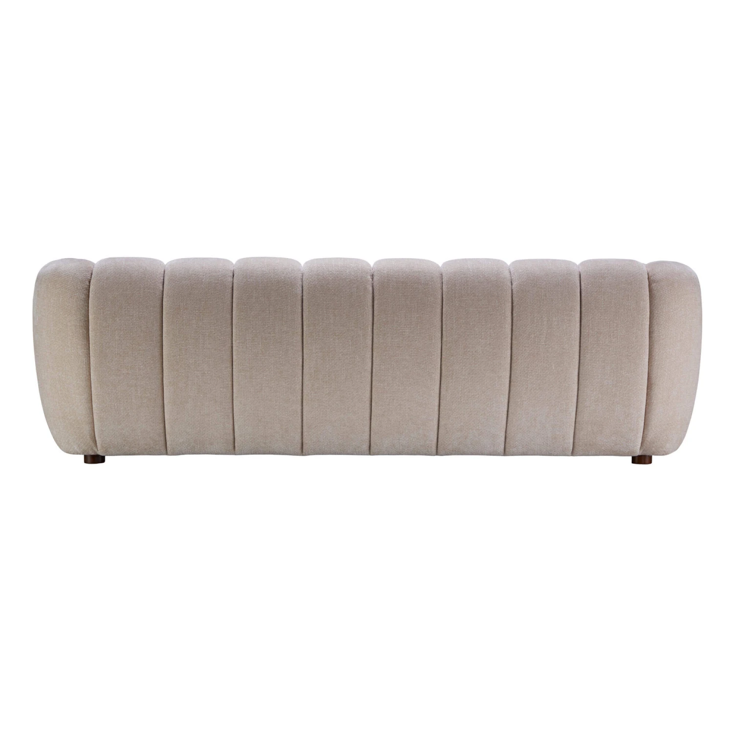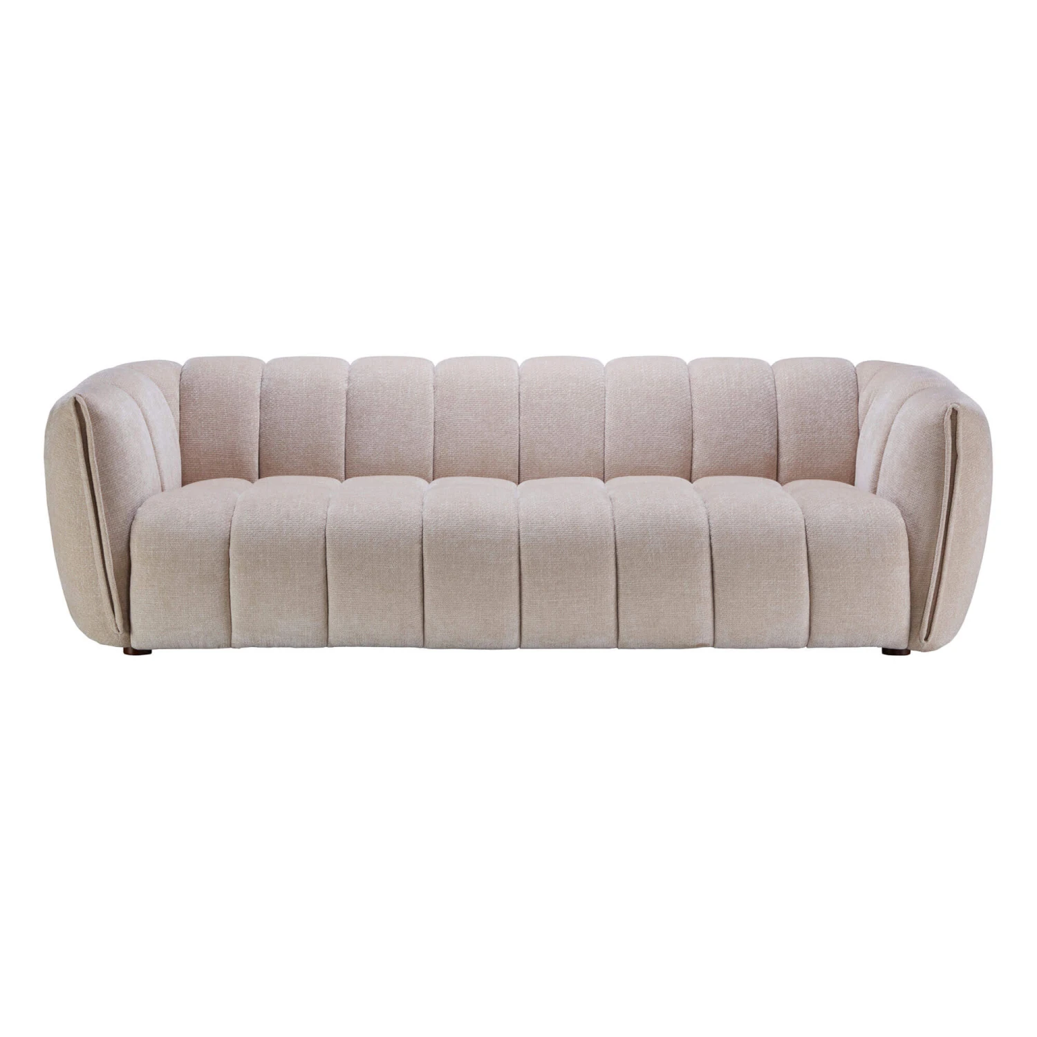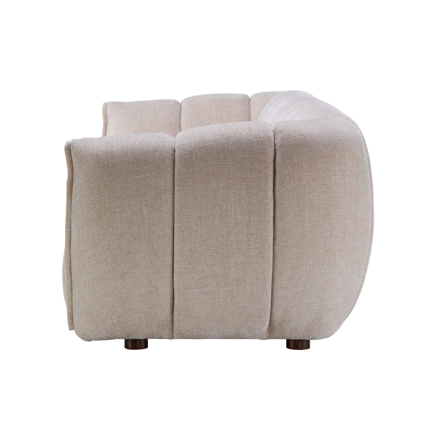 Indulge in ultimate comfort and timeless elegance with the Claudia Cream Fabric 3 Seater Sofa. Upholstered in a cream fabric, the Claudia features soft curves, panelled detailing and espresso brown rubberwood legs, creating a super plush and stunning piece.
