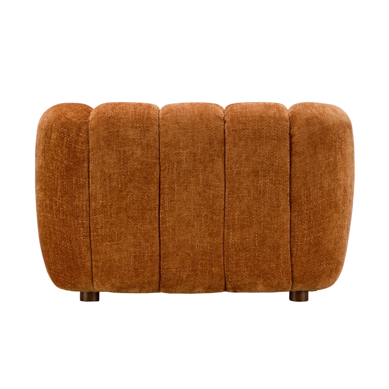 Indulge in ultimate comfort and timeless elegance with the Claudia Rust Orange Fabric Armchair. Upholstered in a rust orange fabric, the Claudia features soft curves, panelled detailing and espresso brown rubberwood legs, creating a super plush and stunning piece.