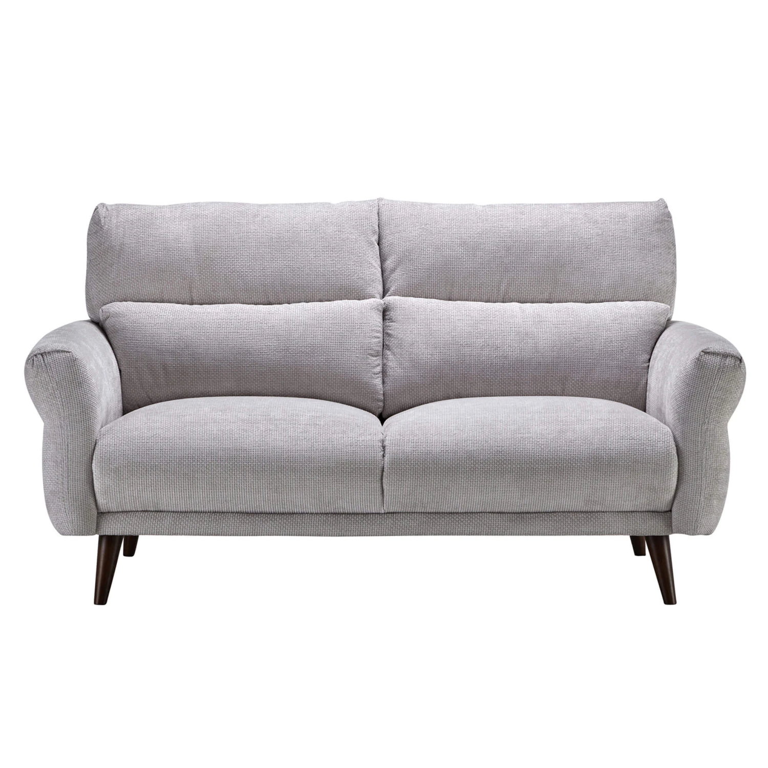 Modern elegance meets unmatched comfort with the Corniche Grey Fabric 2 Seater Sofa. Upholstered in a grey fabric, the Corniche features soft but curved lines, a cross stitched design and dark brown rubberwood legs, creating a sophisticated and versatile piece.
