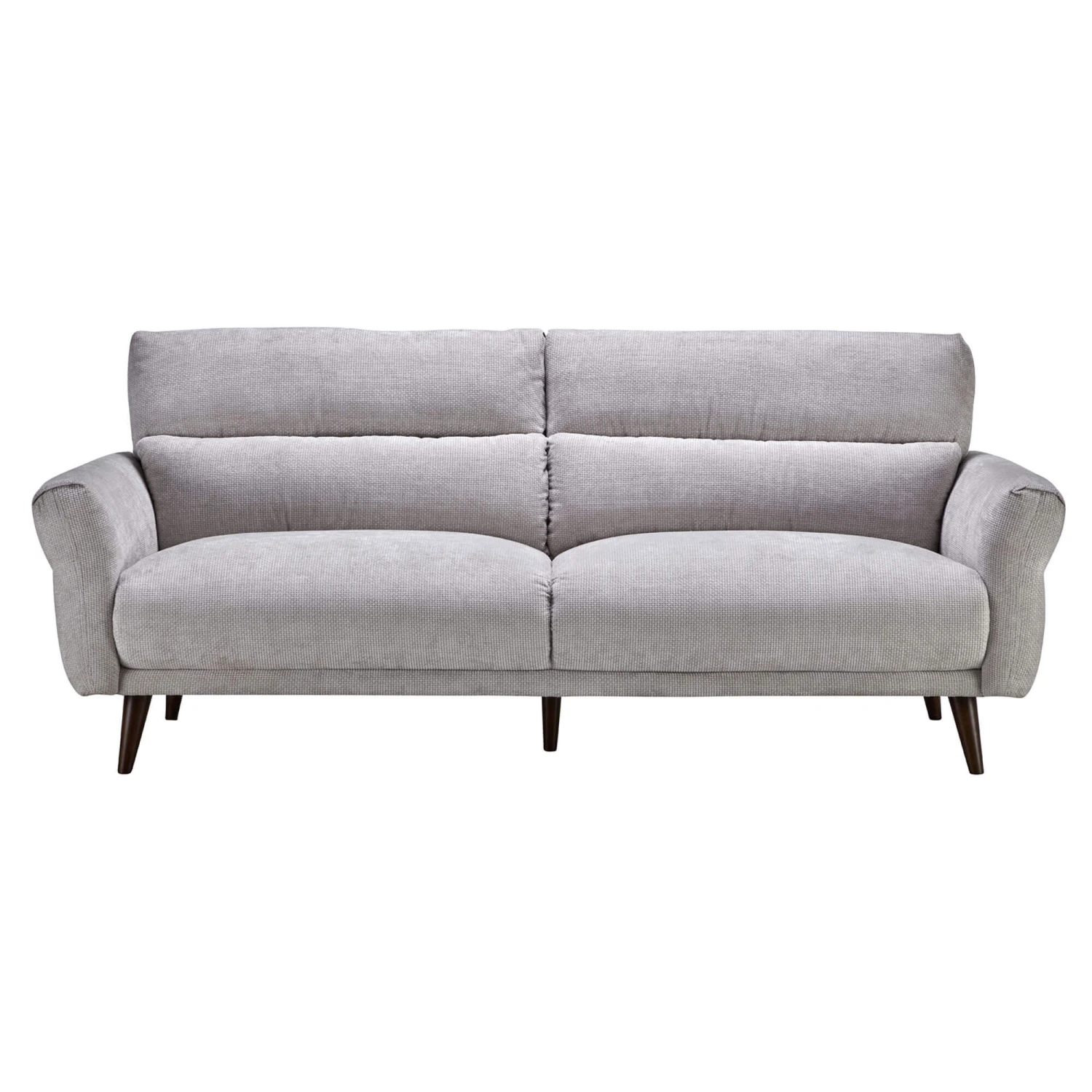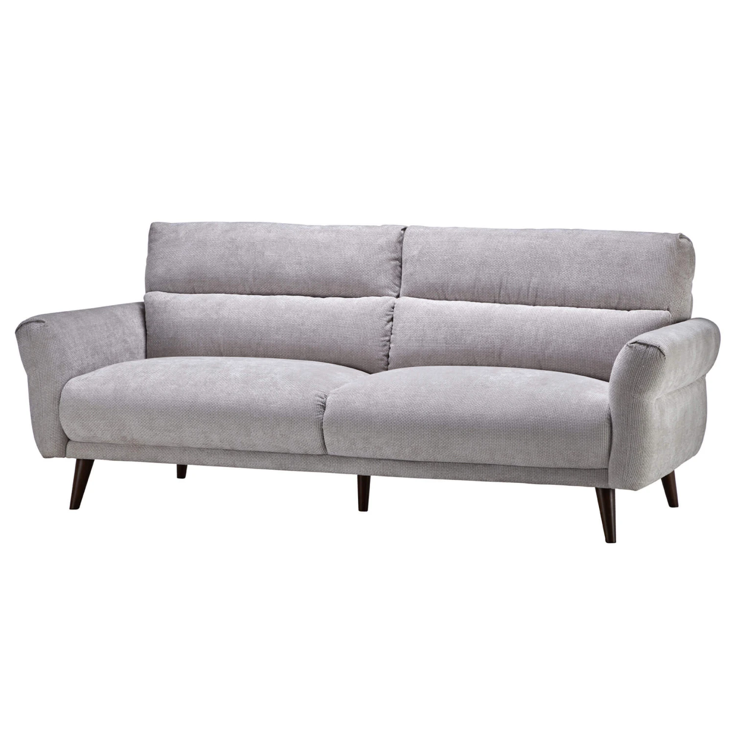 Modern elegance meets unmatched comfort with the Corniche Grey Fabric 3 Seater Sofa. Upholstered in a grey fabric, the Corniche features soft but curved lines, a cross stitched design and dark brown rubberwood legs, creating a sophisticated and versatile piece.