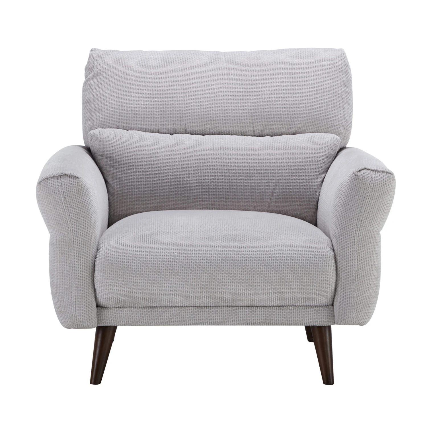 Modern elegance meets unmatched comfort with the Corniche Grey Fabric Armchair. Upholstered in a grey fabric, the Corniche features soft but curved lines, a cross stitched design and dark brown rubberwood legs, creating a sophisticated and versatile piece.