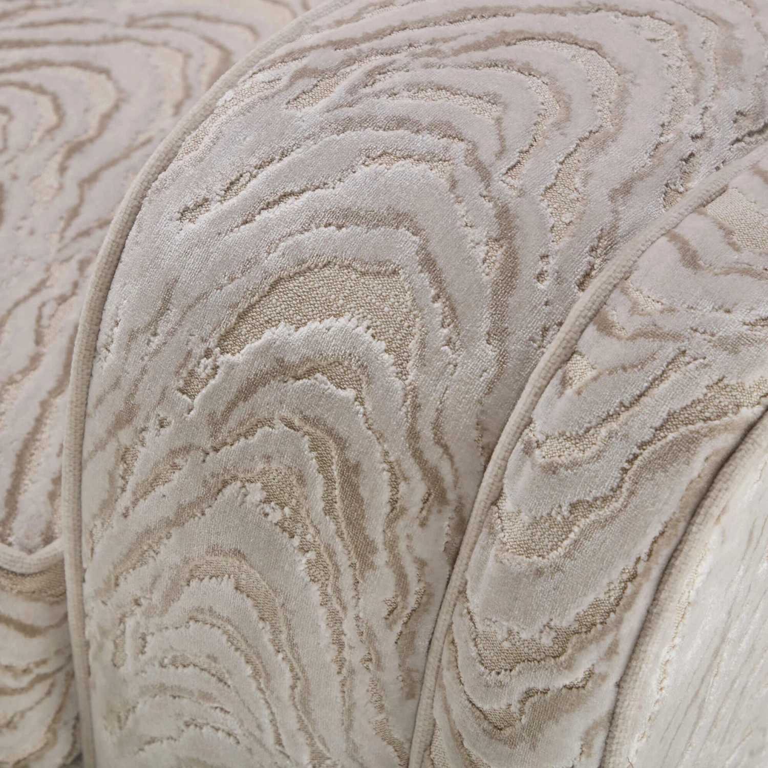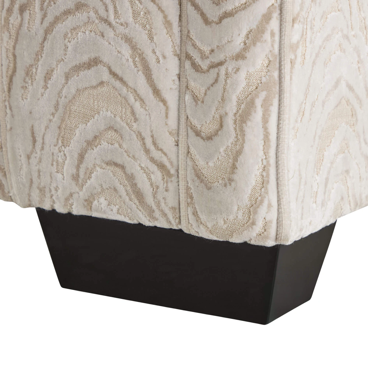 The Como Metropolitan Cream Fabric Large Sofa by David Gundry embodies understated elegance and inviting comfort. Upholstered in a textured patterned Metropolitan cream fabric, the Como showcases a refined contemporary silhouette with clean lines, deep cushions, wide curved top arms, a Mythica linen piping and black block feet, creating a timeless and sumptuous statement piece.