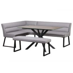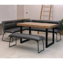 Malmo Reclaimed Timber 135cm Dining Table, Clarence Grey Right-Hand Corner & Single Bench