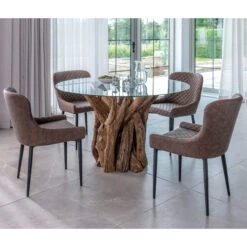 Java Teak 130cm Round Dining Table With 4 Ramona Brown Dining Chairs