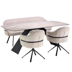 Serena 200cm Dining Table With Bench And 2 Swivel Faith Dining Chairs