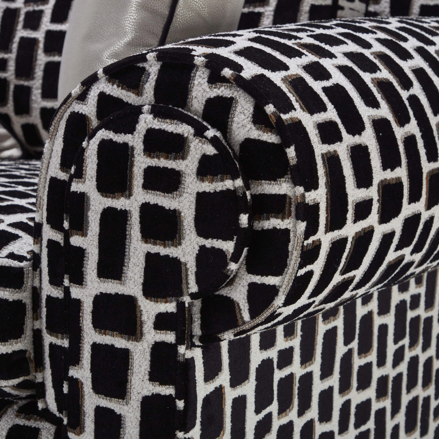Accompanied with two medium scatter cushions in a Byzantium pearl plain fabric with a contrasting Amalfi black piping, each cushion has a contrasting Amalfi black piping to add to its elegant and exquisite look. Derived from an original piece from Chanel, the Coco sofa is glamorous and iconic, making it the perfect addition to any home interior setting thanks to its sophisticated and timeless and appearance.