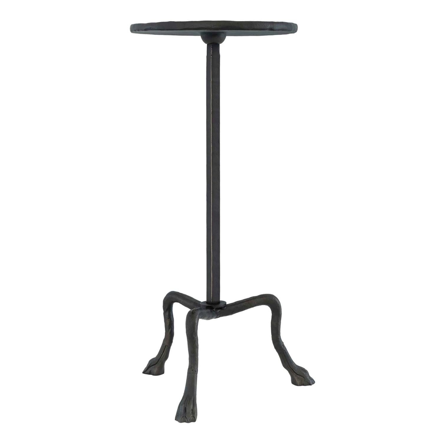 A sleek black side table hand crafted by skilled artisans featuring a bronze finish and 3 statement legs is perfectly versatile whether you style by your bed or beside your sofa this side table is perfect for trinkets, drinks and small accessories. The round top allows this side table to fit into small spaces with a raised edge for a tray like effect complimenting whatever you choose to display.