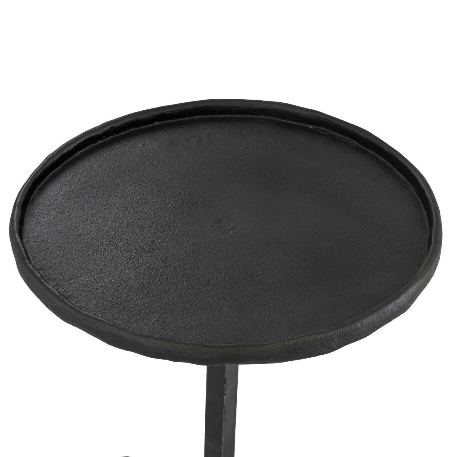 A sleek Hand crafted by skilled artisans black side table featuring a bronze finish and 3 statement legs is perfectly versatile whether you style by your bed or beside your sofa this side table is perfect for trinkets, drinks and small accessories. The round top allows this side table to fit into small spaces with a raised edge for a tray like effect complimenting whatever you choose to display.