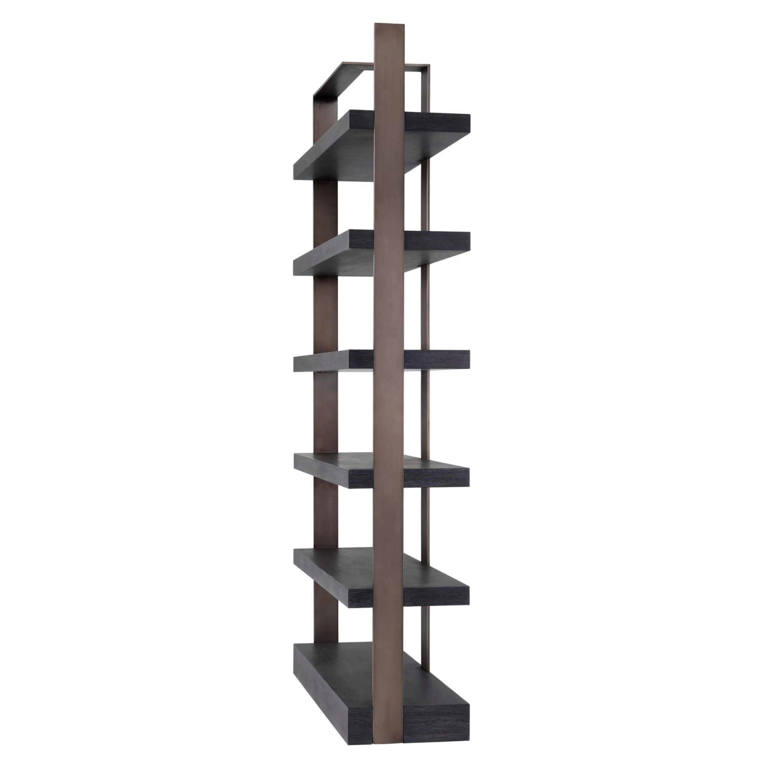 This is a handcrafted, stylish and practical storage unit, to give your books, plants and accessories a home for the finishing touches to your home décor, matching all modern styles with its bronze finish sturdy metal frame that contains 6 shelves in mocha crown oak veneer.