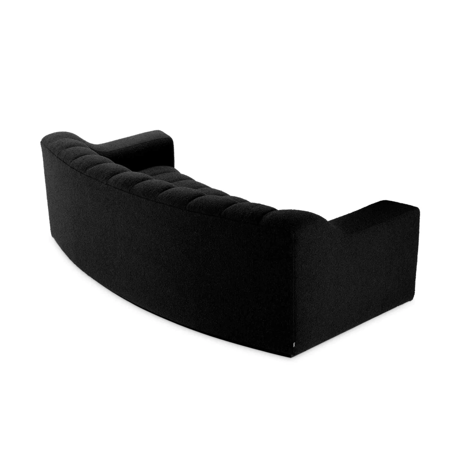 The Kelly Small Sofa by Eichholtz is perfect for adding depth and character to any living space. Hand crafted by skilled artisans and upholstered in a gorgeous black-coloured boucle fabric, the Kelly sofa is a stunning piece that is sure to enhance any setting. The Kelly sofa features a slightly curved design with deep channel stitching and a subtle, contemporary black base, making the sofa not only an eye-catching feature, but a sumptuously comfortable place to sit back and relax.