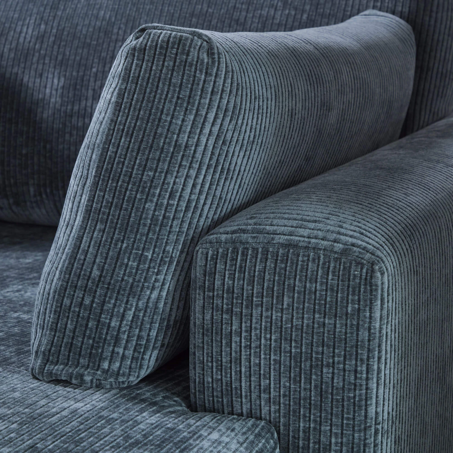 The Ellington Teal Fabric U-Shaped Sofa offers luxurious texture and cosy aesthetics. Upholstered in a teal blue corduroy fabric, the Ellington features clean lines, generously padded cushions, chunky arms, a u-shaped design and black plastic legs, providing ample seating space whilst creating a wonderfully plush and sophisticated piece able to ensure maximum comfort.
