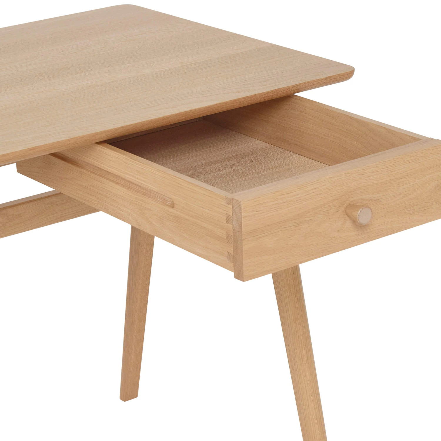 Compact and well suited to many interior styles, the Ballatta Oak Office Desk by Ercol is perfect for creating a designated work station in your study or lounge and is even small enough to fit neatly into a cosy nook or that area under the stairs in your home. Suitable for small living spaces and ideal for use with a laptop or as a writing desk for ad hoc tasks or homework, the Ballatta is sure to make a handy addition to any home. Made from a mix of high-quality solid oak and oak veneers, with a lacquered, clear matt finish enhancing the beautiful natural grains and textures of the wood whilst providing a degree of protection to the surface, the Ballatta Office Desk has vast visual appeal and has been constructed to the highest standard. A small, convenient, built-in drawer offers practical storage for stationary and other miscellaneous items, so you can keep your desk tidy and organised.