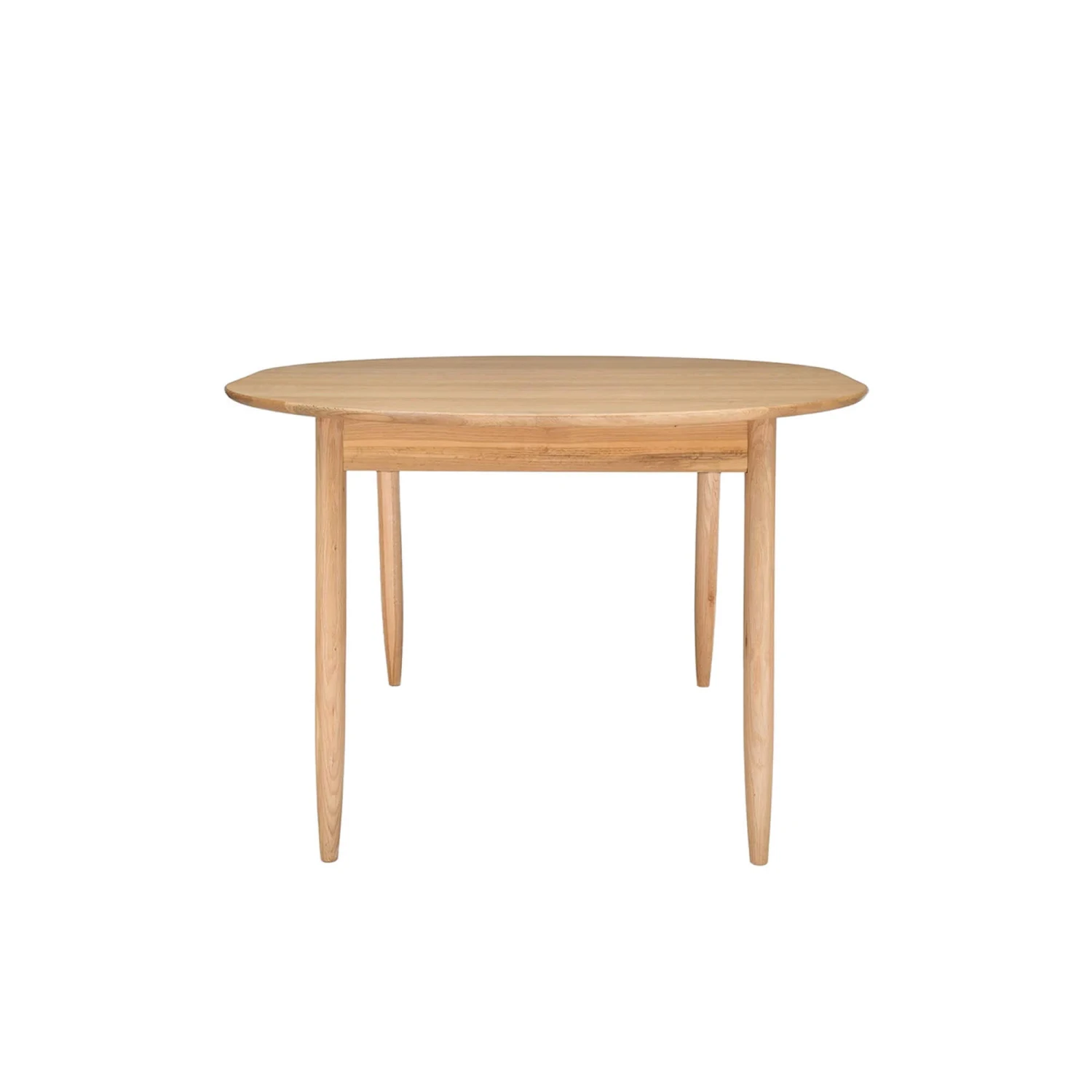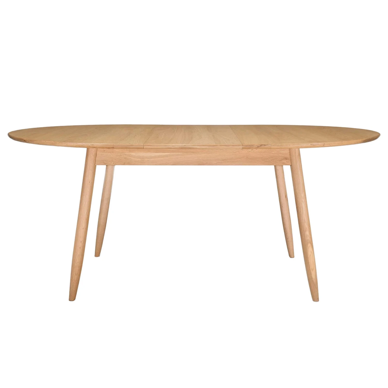 A charming oval oak extending dining table made from strong oak that mimics Scandinavian design. This stunning table features a compact extending mechanism that blends in with the existing table top whilst complimenting the units tapered legs. The overhanging top adds depth and character to the table and makes for a stunning focal point.