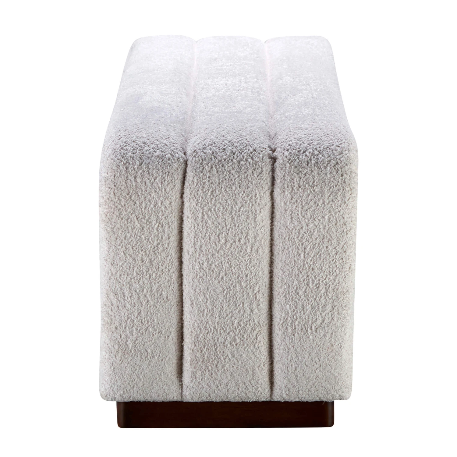soft white boucle which contrasts the dark wood tones.