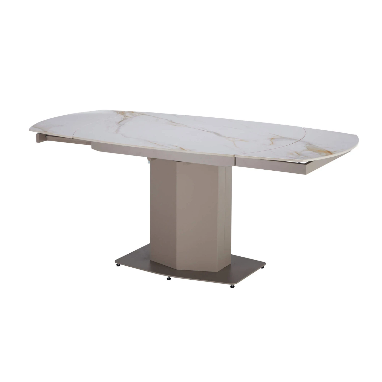 Elevate your dining experience with the Fidenza 200cm Ceramic Extending Dining Table, a stunning centrepiece that seamlessly blends contemporary design with timeless elegance. This rectangular table features a luxurious ceramic top with a glass coating, showcasing a captivating marble effect. The soft rounded edges create an inviting oval shape at the ends, perfect for entertaining guests.