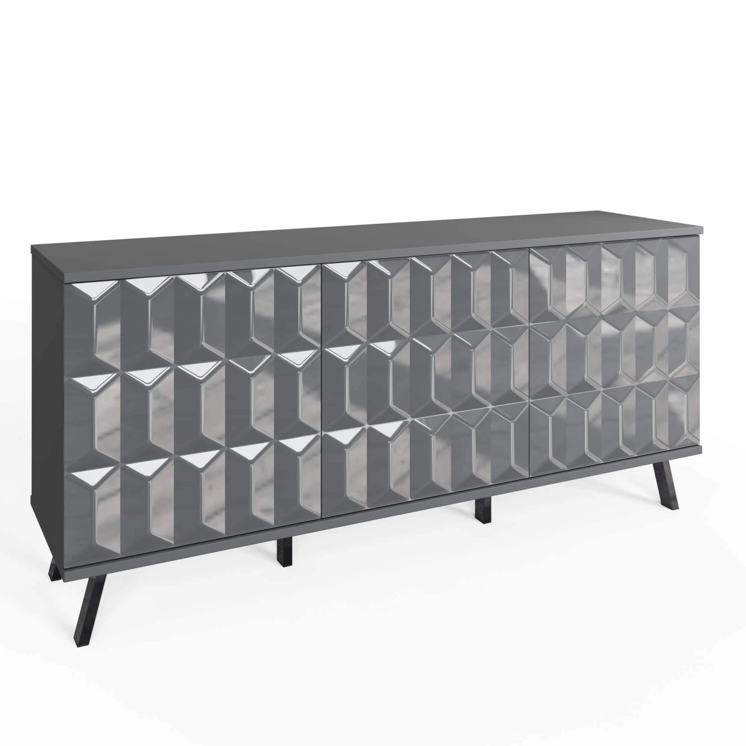 The Elevate Grey Sideboard features a bold look, with a high-shine painted, textured geometric door and complementing satin finish to the main body, elevated by high shine smoked grey legs to complete the look. The sideboard offers discreet wireless phone charging and integrated full colour spectrum LED lighting which can be controlled with the Frank Olsen app or SMART speaker.