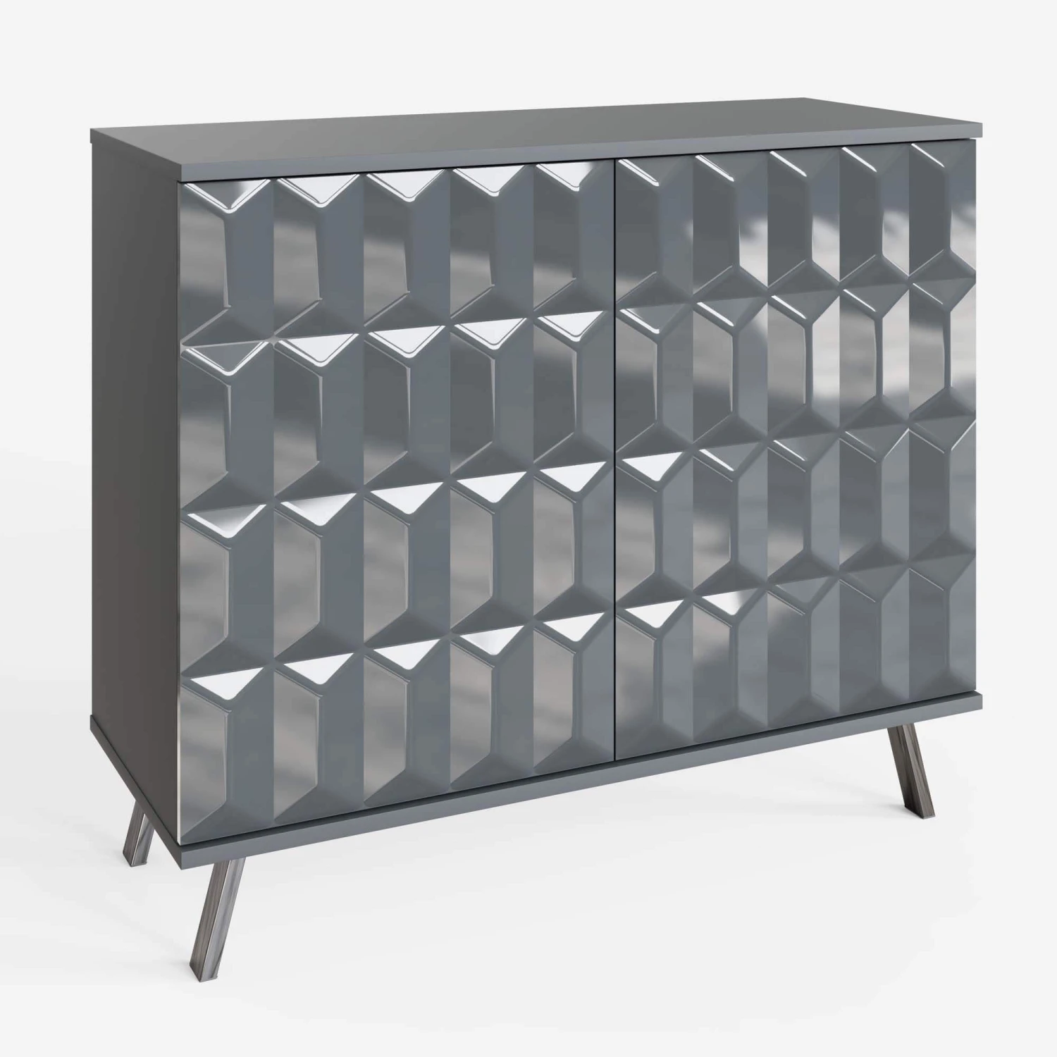 The Elevate Grey Small Sideboard features a bold look and compact proportions, with a high-shine painted, textured geometric door and complementing satin finish to the main body, elevated by high shine smoked grey legs to complete the look. The sideboard offers discreet wireless phone charging and integrated full colour spectrum LED lighting which can be controlled with the Frank Olsen app or SMART speaker.