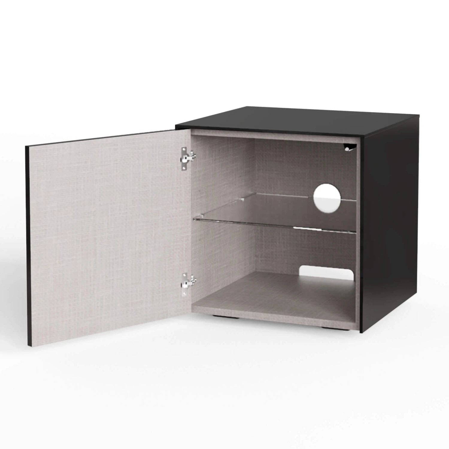 Created with style and functionality in mind, the Intelligent Side Table boasts a scratch resistant, high gloss black exterior with matching glass top and a textured grey interior with adjustable internal shelves for ample storage. The combination of an ultra-chic design and superb technology makes this a must-have piece of furniture for any modern home.