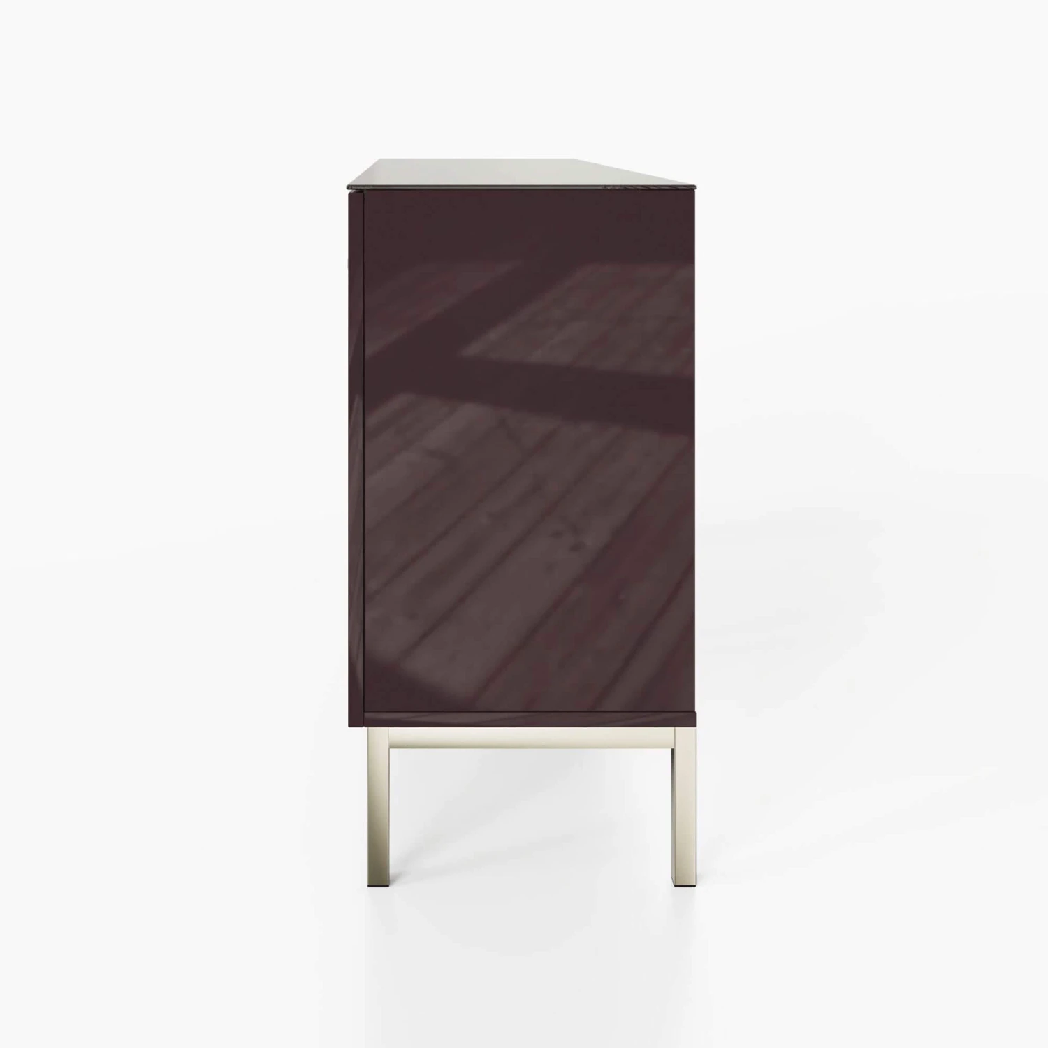 A stunning plum black sideboard from Frank Olsen that has clean lines and has a wonderful plum black high-gloss finish. The unit incorporates a range of features that Frank Olsen is renowned for such as LED back lighting that can be controlled via your smart home devices or the dedicated app, along with wireless charging on the top of the unit. Inside the sideboard is a stunning plum white paint that compliments the unit.