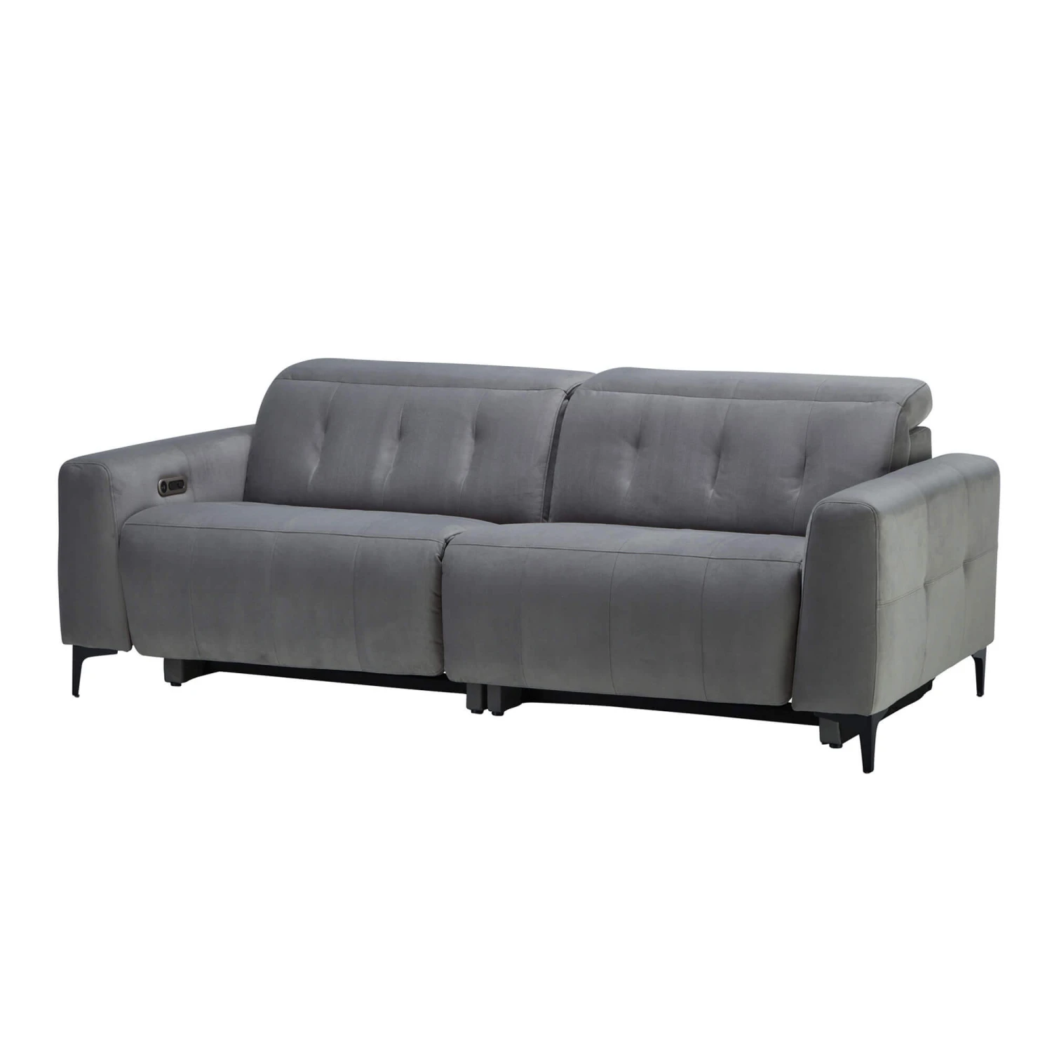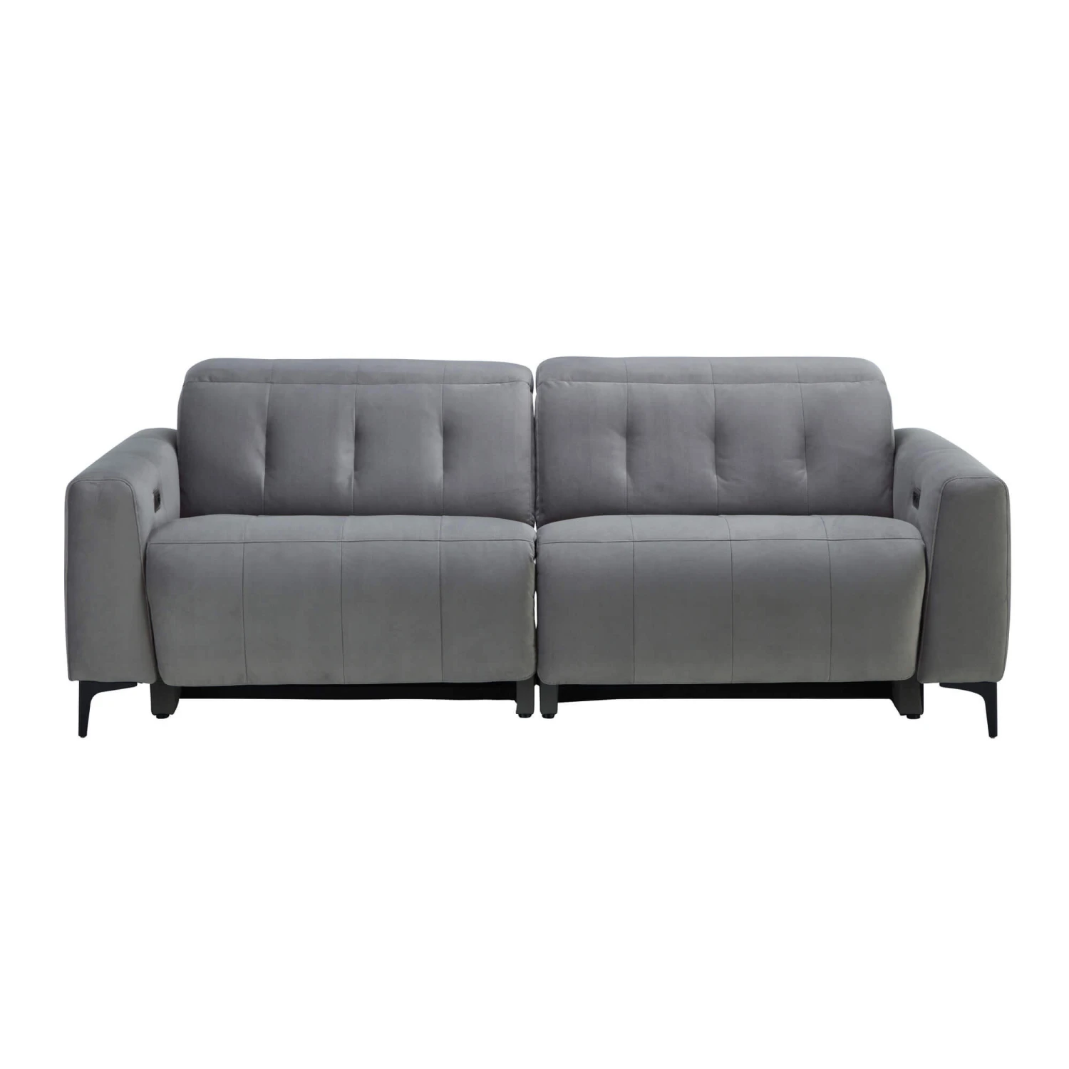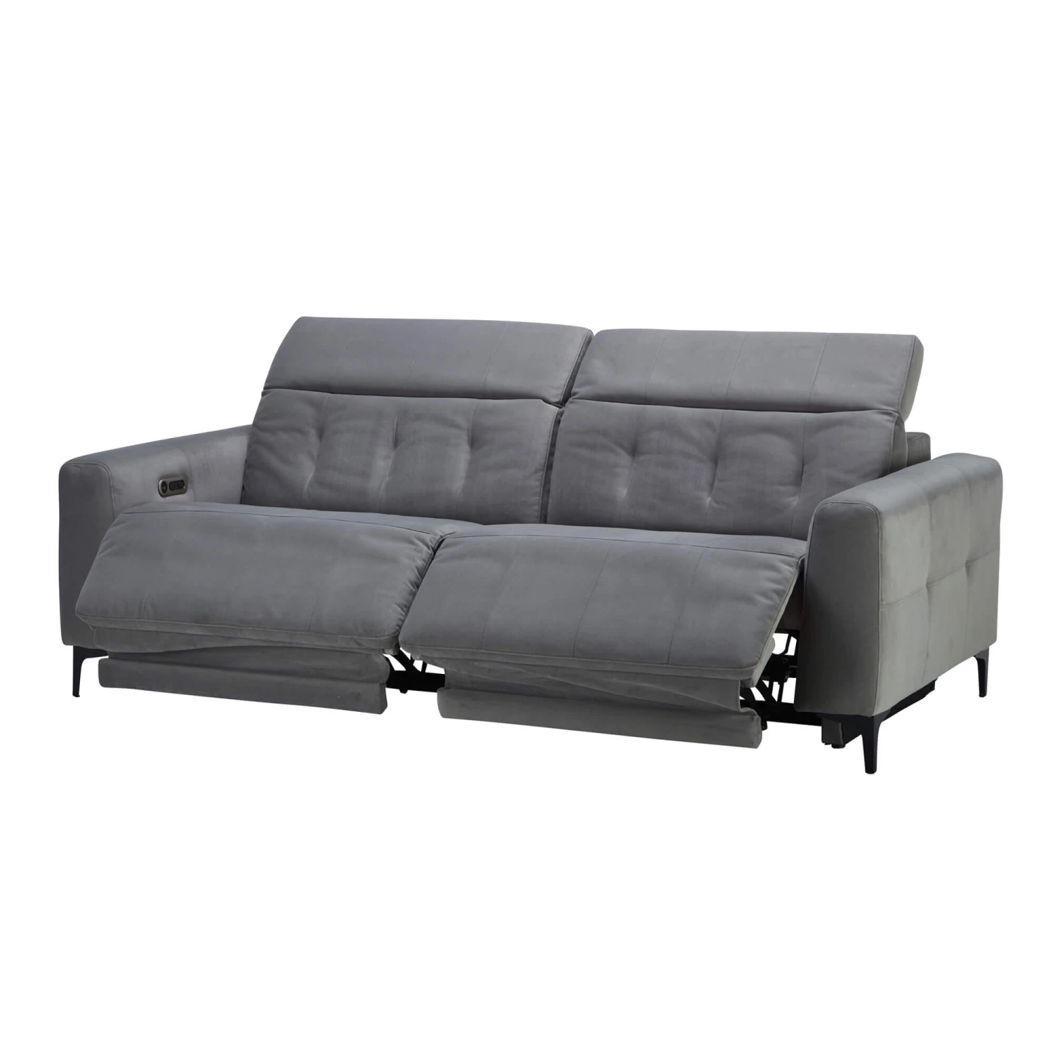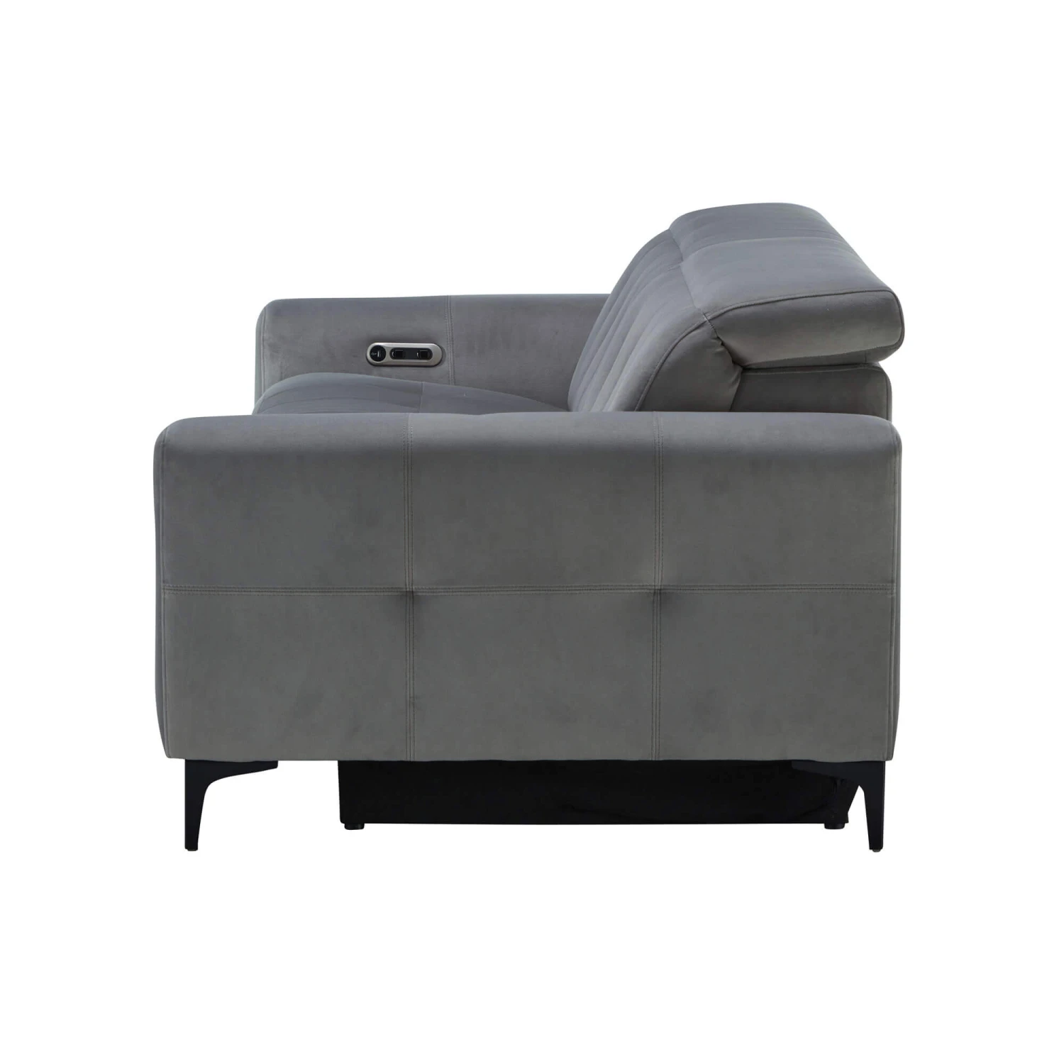 Comfort meets sophistication with the Frascati Misty Grey Fabric Power Recliner 3 Seater Sofa. Upholstered in an attractive misty grey fabric, the Frascati features straight arms, value detailing on the backrest and armrests, and black metal legs, creating a modern and stylish look.