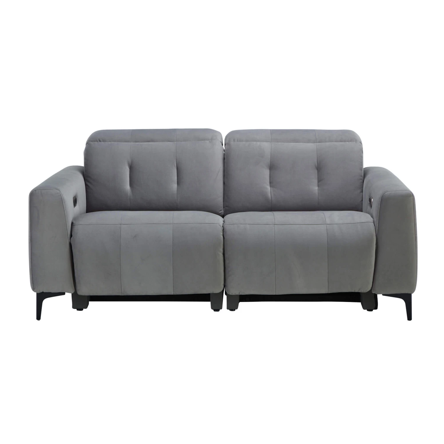 Comfort meets sophistication with the Frascati Misty Grey Fabric Power Recliner Loveseat. Upholstered in an attractive misty grey fabric, the Frascati features straight arms, value detailing on the backrest and armrests, and black metal legs, creating a modern and stylish look.