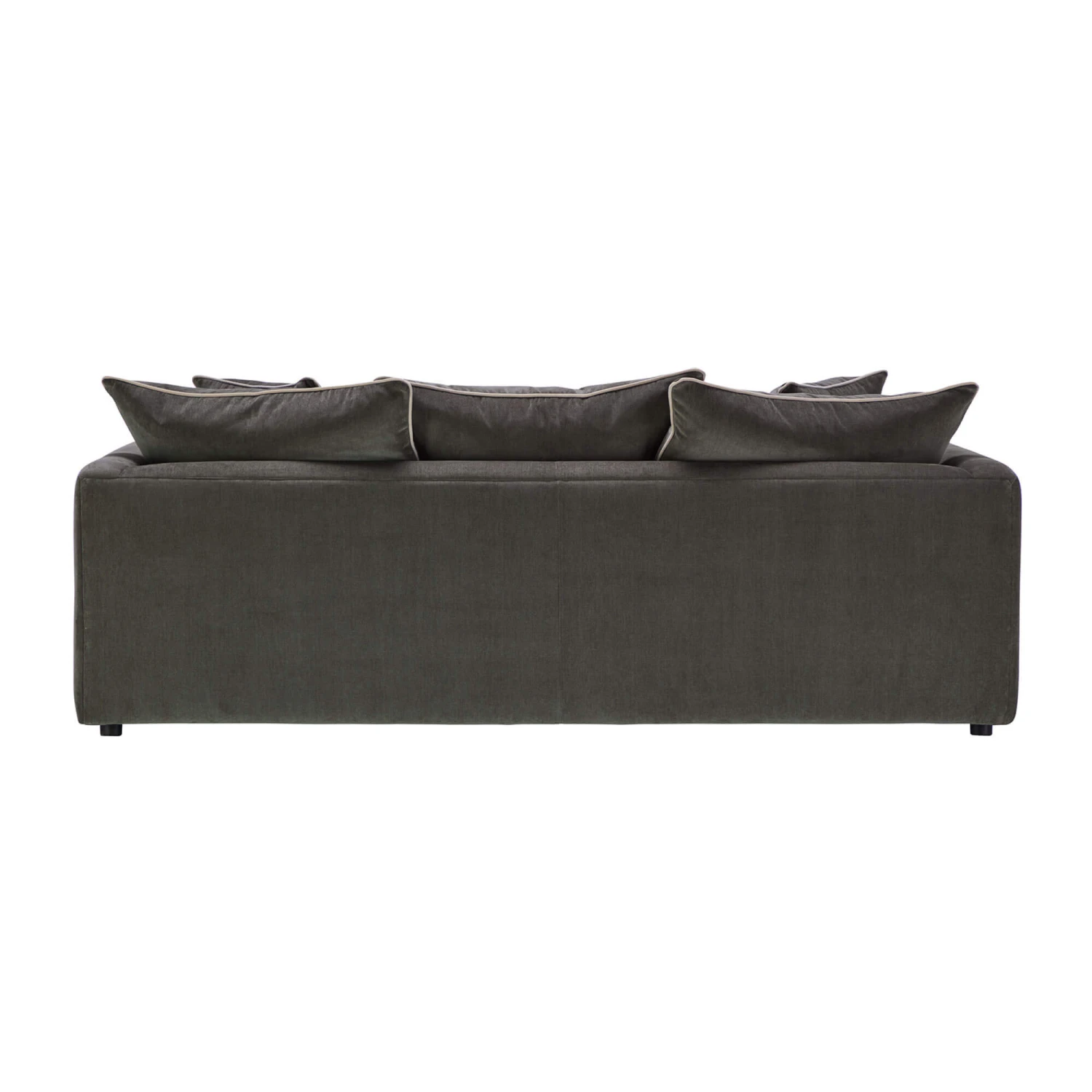 The Gabriella Dusk Charcoal Fabric Large Pillow Back Sofa combines an effortless, lived-in look with tasteful details. Upholstered in a dusk charcoal grey fabric, the Gabriella has straight arms, unseen glides, a cosy duck feather pillow back design and deep cocooning seats, inviting you to relax and unwind. Showcased with ocean inspired hues and paired with a soothing natural contrast piping, it embraces the coastal trend in an effortless and laidback way.