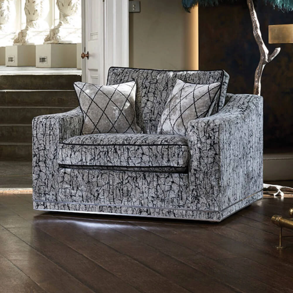 Offering sumptuous comfort in an elegantly refined design, the Fifth Avenue Fabric Sofa & Chair Collection is the pinnacle of luxury with its grand aesthetic and indulgent features. Meticulously crafted from the highest quality materials by skilled artisans with an exceptional attention to detail, each piece in the Fifth Avenue Collection has been expertly contoured and exquisitely finished to the finest standard to deliver superior comfort in a visually striking, opulent design. The defined clean lines and gentle flowing curves lend this range its high-end, modern look, whilst the stylish chrome trim embellishing the plinth adds a lavish decorative touch.