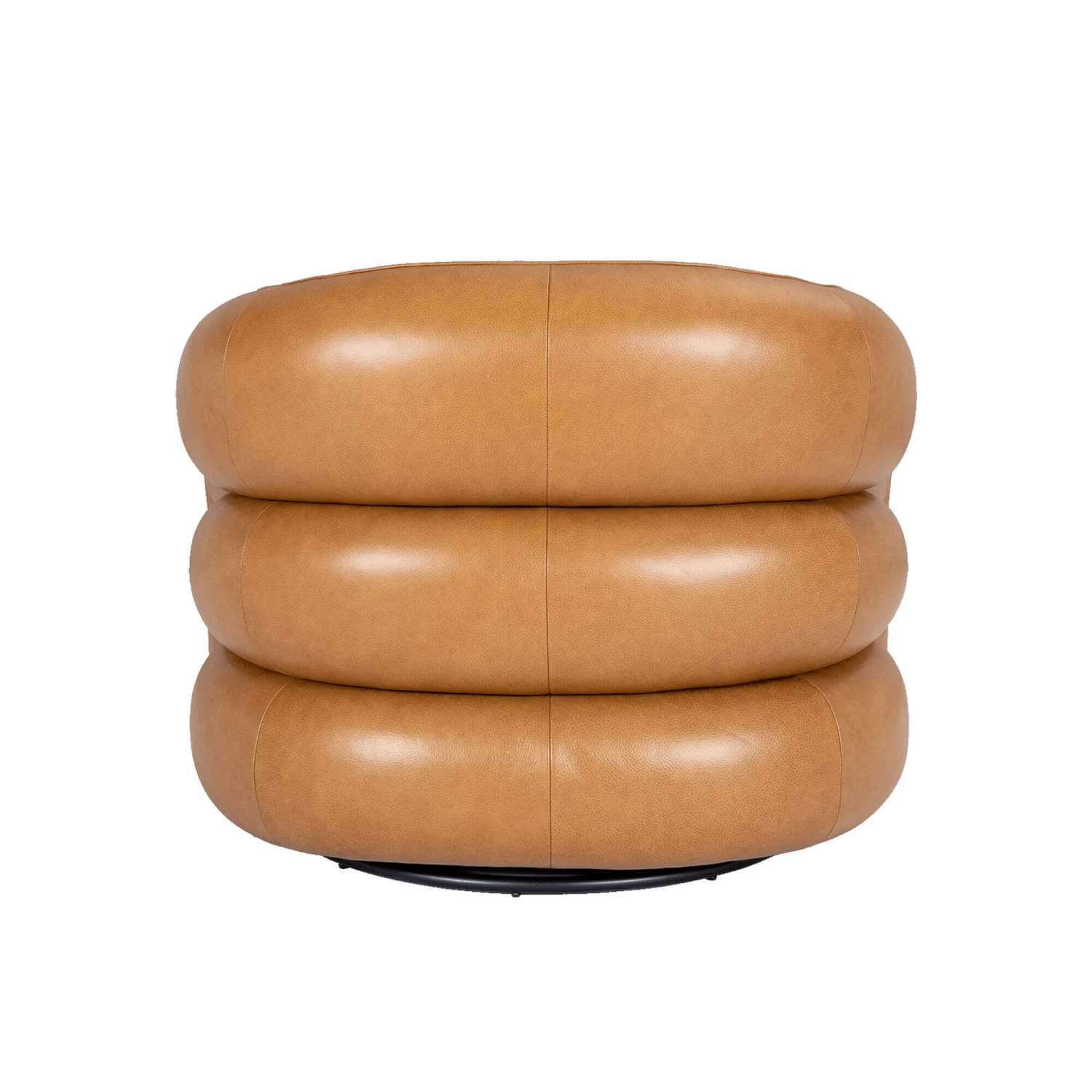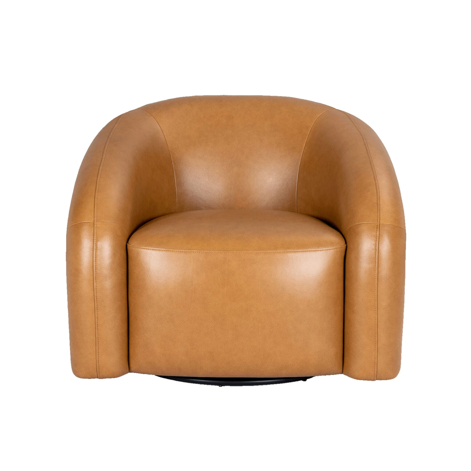The Arlo Brown Leather Swivel Chair from Glass House is the perfect blend of contemporary comfort and artistic style. Inspired by the heart of style, the Glass House collection is a collective blend of mid-century style inspired by 20th-century modernism, allowing you to experience luxurious comfort and exquisite detailing in every design.