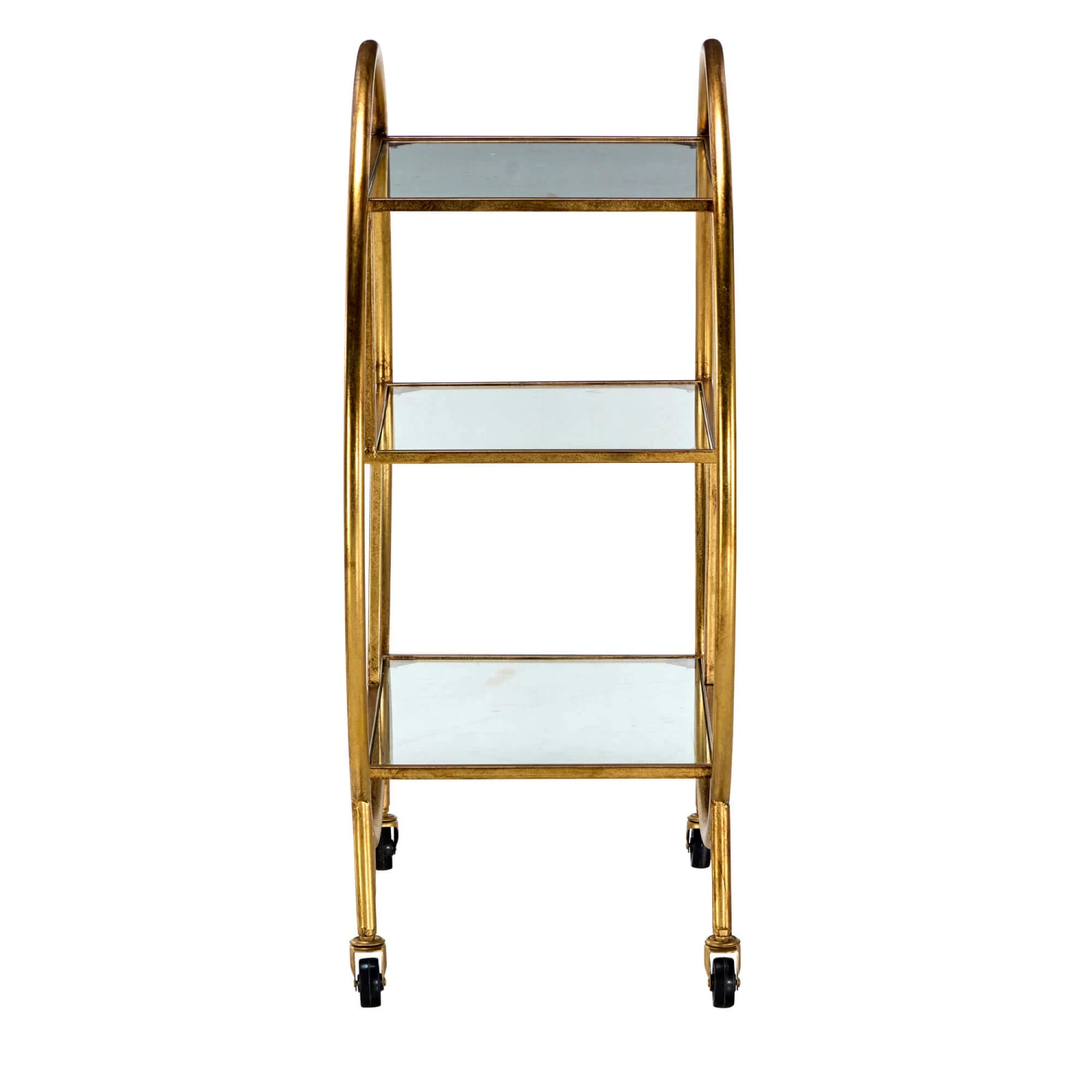 This gold 3 tier trolley creates an elegant look in your room. The trolley is made using gold metal and has 3 glass shelves allowing you to place plenty of items on it. This trolley works perfectly as a drinks trolley or just as an accessory to display decorative items such as diffusers. This trolley exuberates a classy, elegant feel.