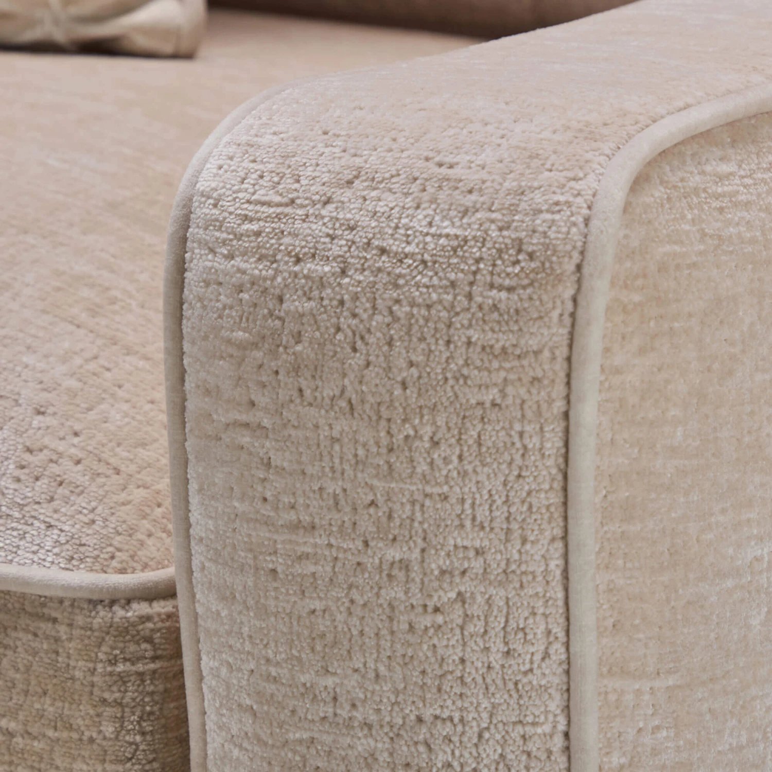 Accompanied with a scatter cushion in a neutral ecru tone and geometric pattern, it is complemented by a lovely almond piping, adding an inviting touch and extra softness to its overall appearance. Combining graceful style and practicality, the Haddon effortlessly enhances any traditional or modern interiors with its versatile charm and enduring appeal.
