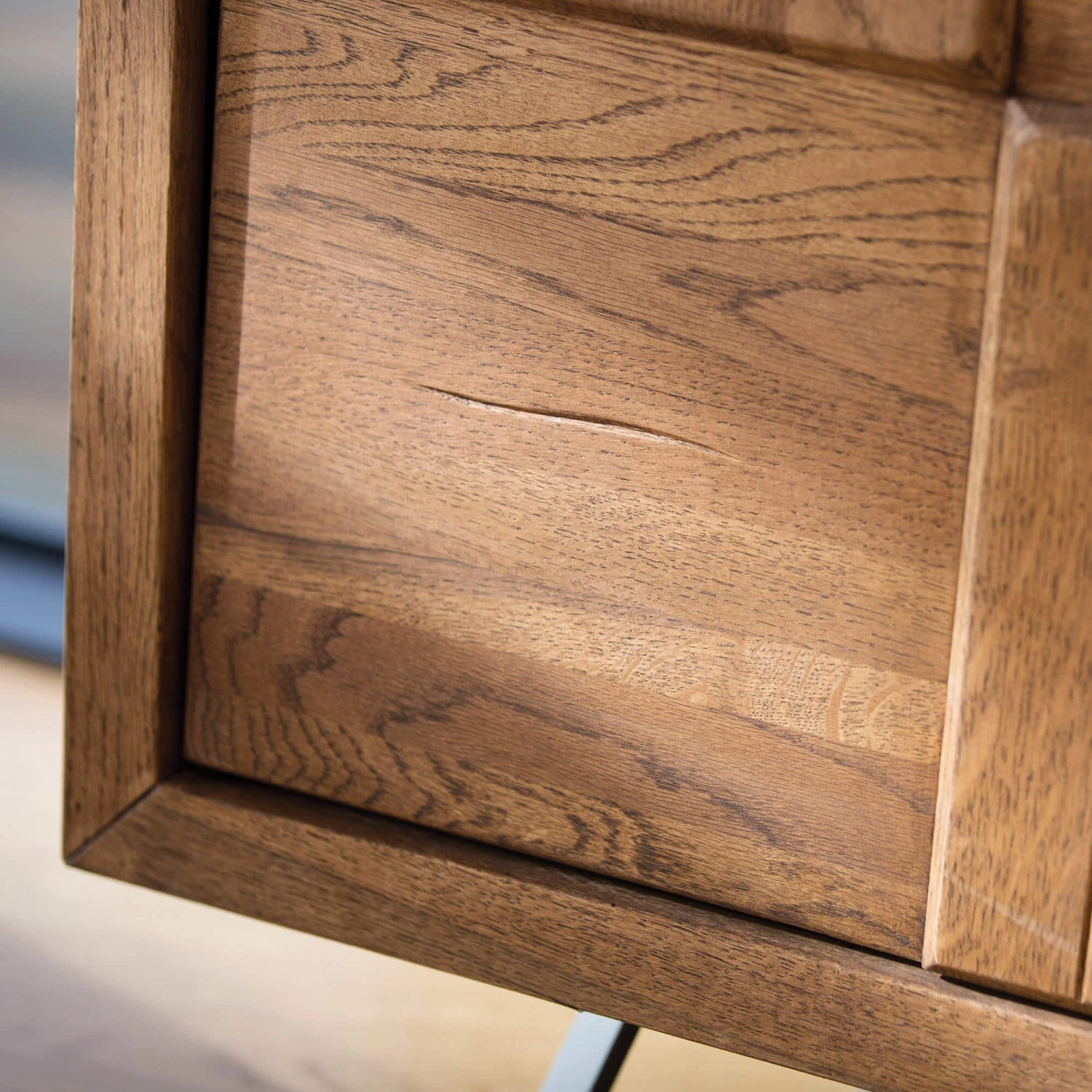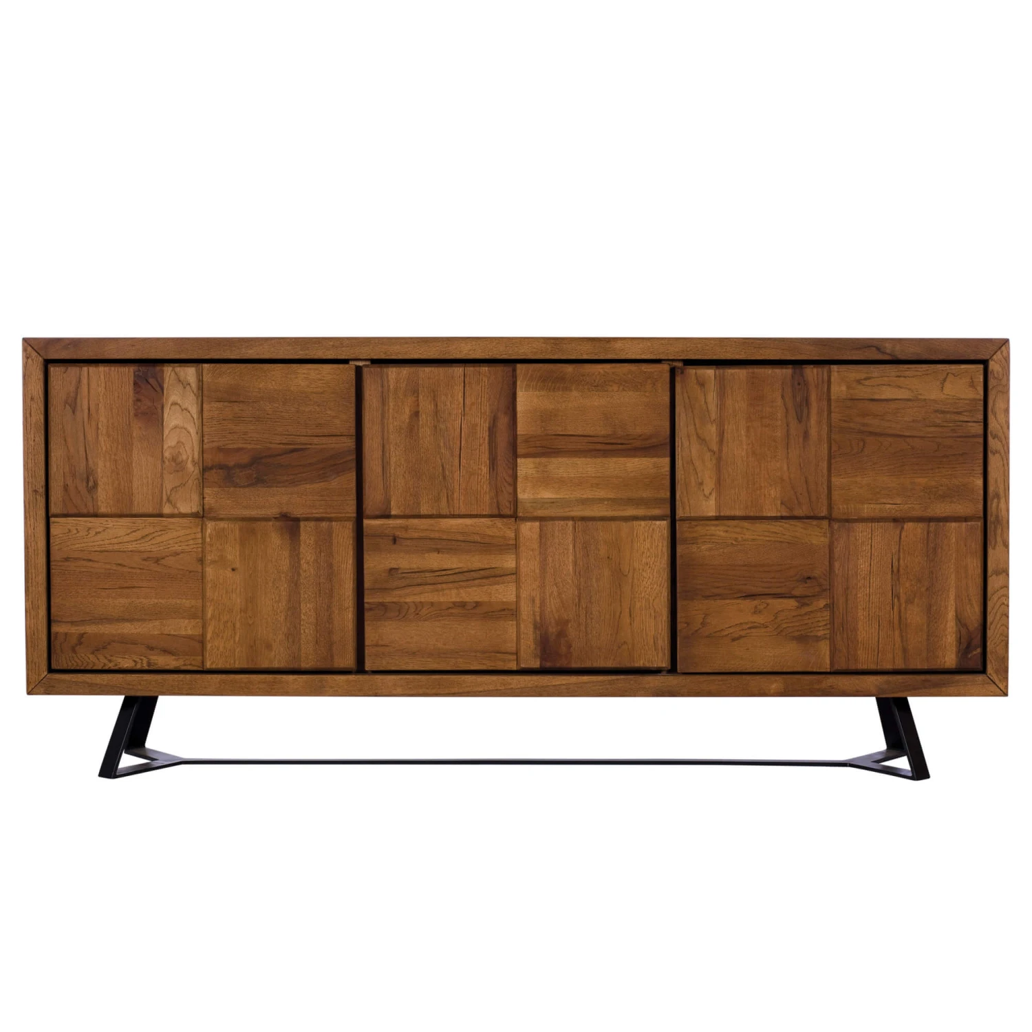 Accompanied with its unique, checkerboard style panelling with bevelled edges making a striking focal feature on the doors, the Harrington Sideboard is a true statement piece that is sure to enrich any décor with its contemporary aesthetic and artistic flair.