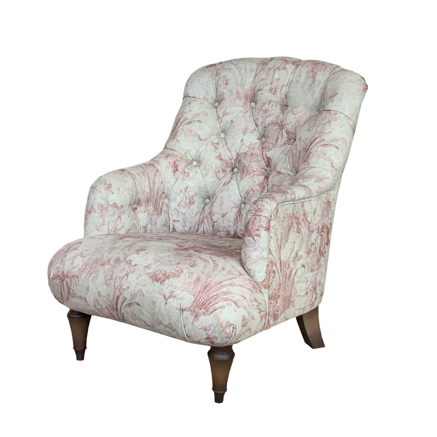 Bring a romantic touch to your living space with the HU Heritage Sedgewick Accent Armchair, upholstered in a beautiful floral fabric. Dusty pink accents upon an ivory coloured backdrop create a dreamy and elegant aesthetic, whilst turned wooden legs with a dark finish enhance the classic beauty of this piece.