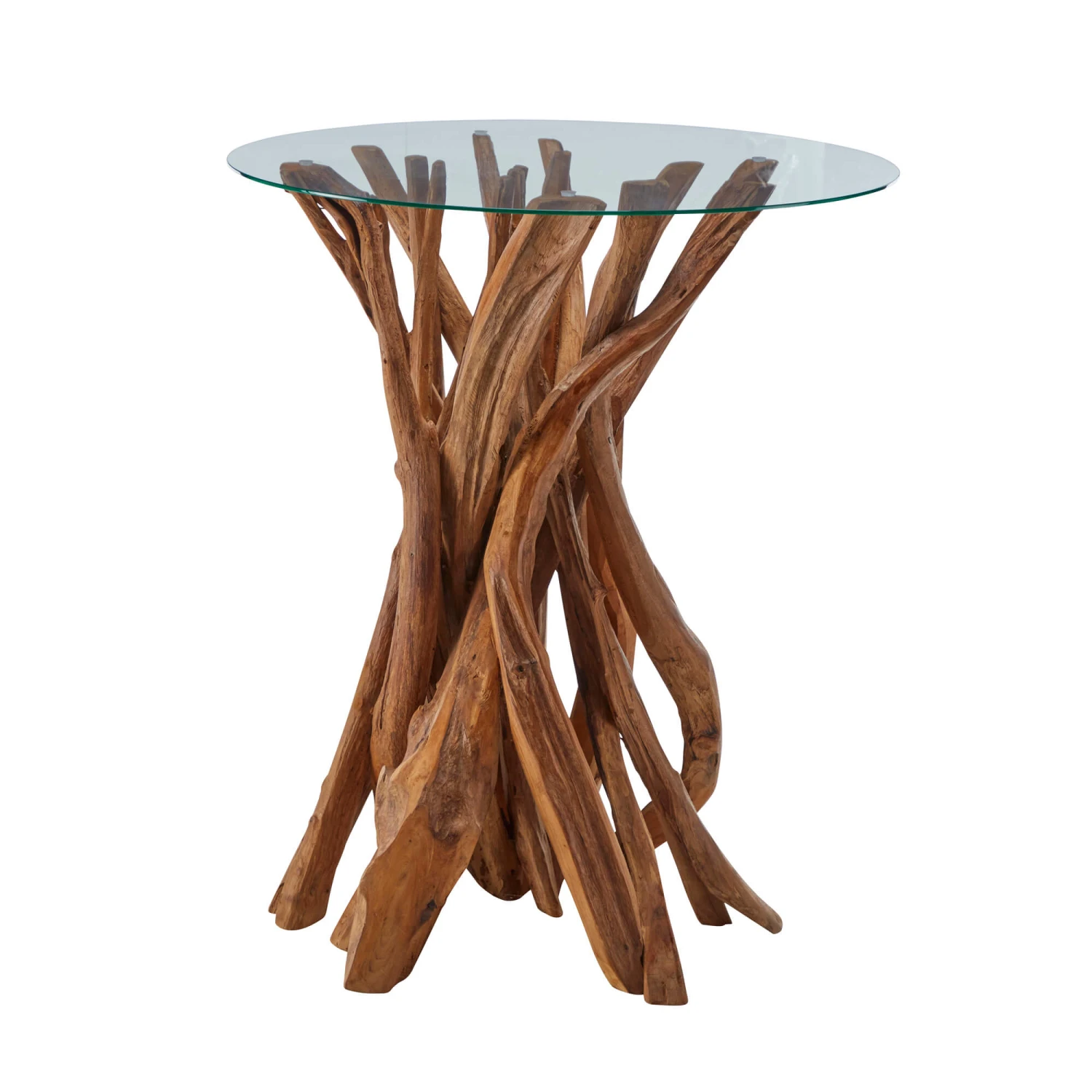 The java bar table offers a combination of rustic and modern style to your home. The base of the table is crafted in the style of the tree branches with a glass table top to display your favourite accessories or for your beverages.
