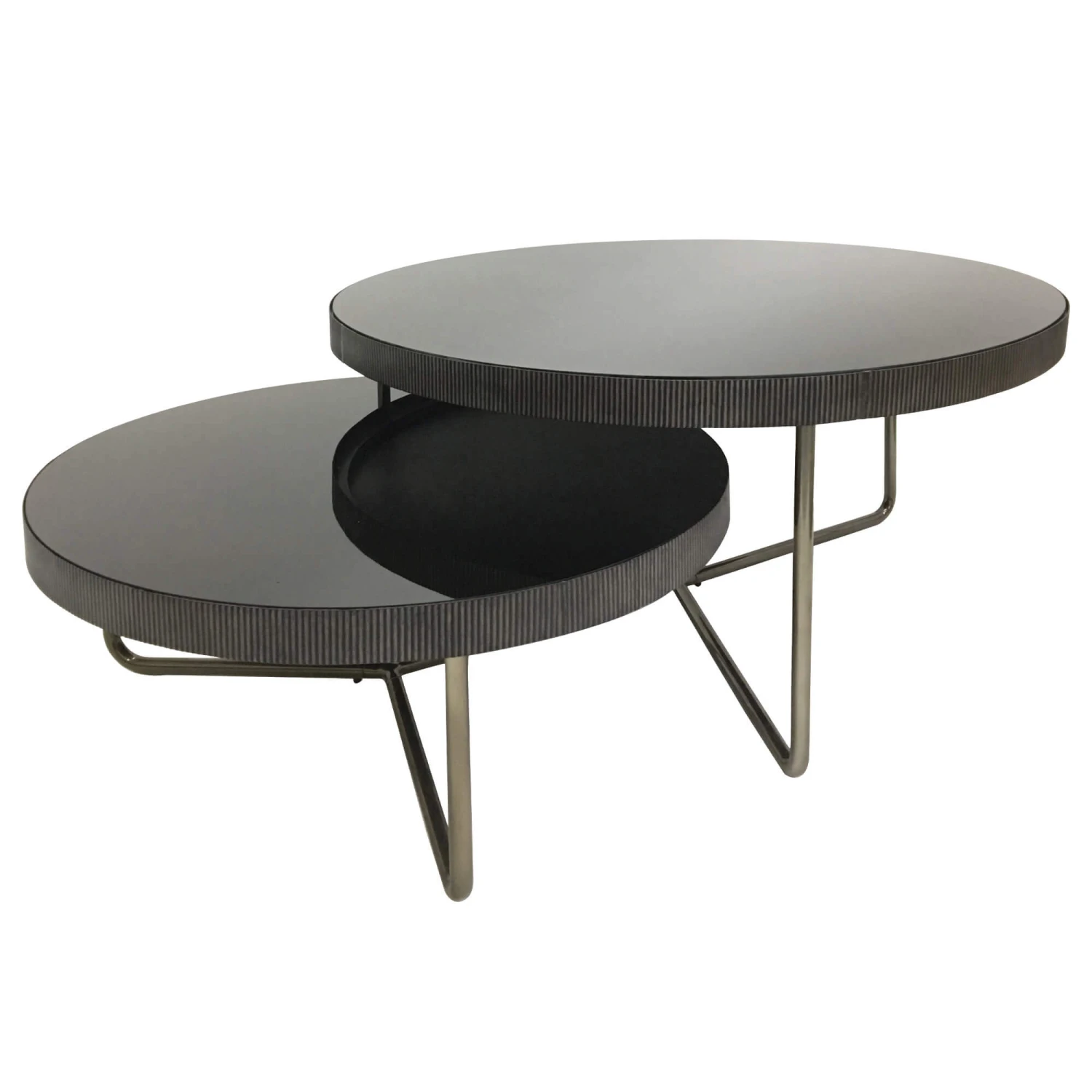 The open, structural style of the metal bases lend these tables their attractive urban look, whilst the reeded edges on the tops create an appealing, corrugated texture, heightening the industrial allure of this piece. Accompanied with its practical, nesting design and smooth, circular glass tops with a black tint, the Knightsbridge Nest of Tables are functional and have a certain easy-going style that will look right at home in any interior.