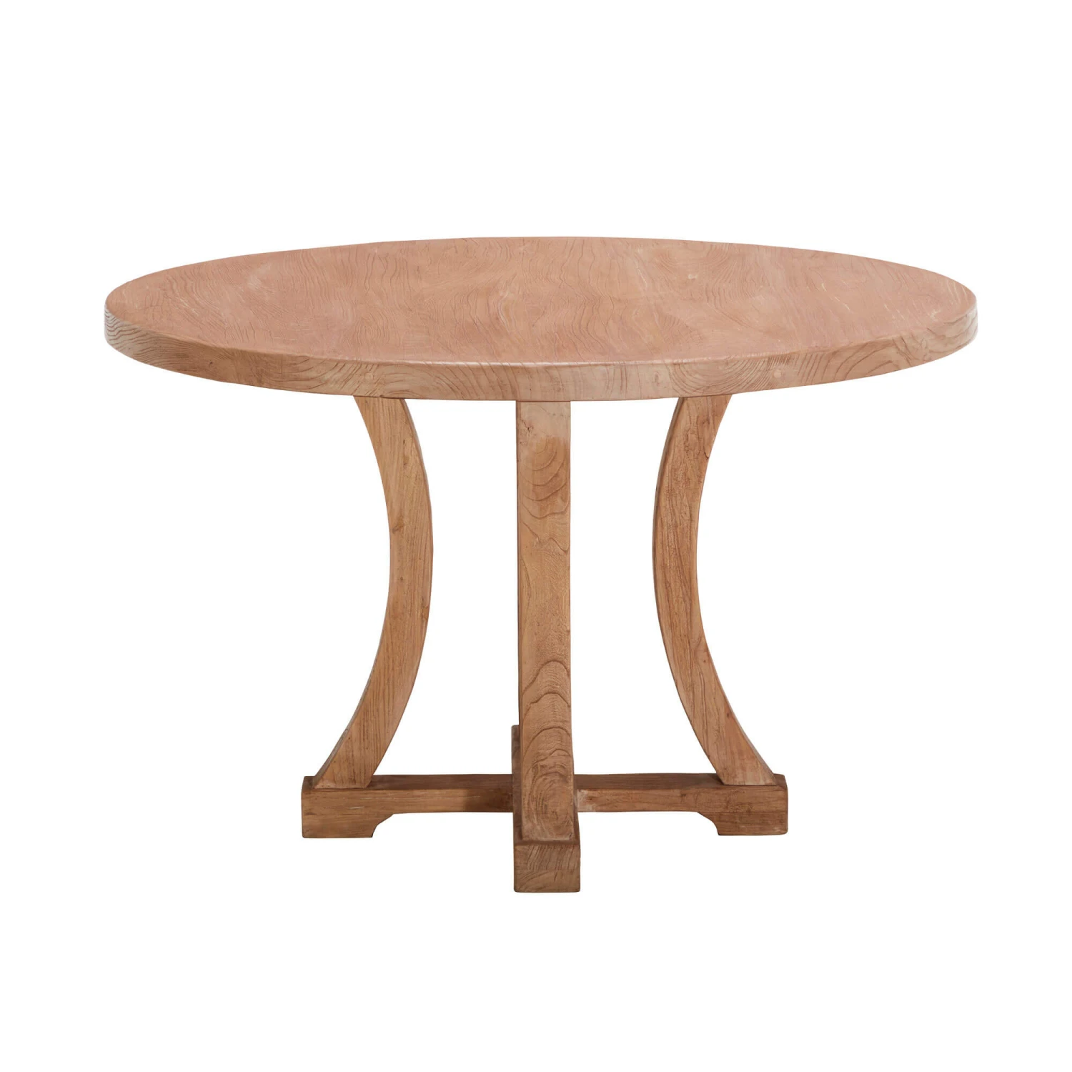 The Linea 120cm Round Elm Wood Dining Table is a masterpiece of refined design, where organic form meets architectural precision. Its small round silhouette is defined by graceful arched legs that curve elegantly inwards, creating a sense of movement and visual lightness. The soft rounded edges and soft textured elm wood surface reveals the material’s inherent character and charm. Each curve and grain tells a story of natural beauty, transforming the table.