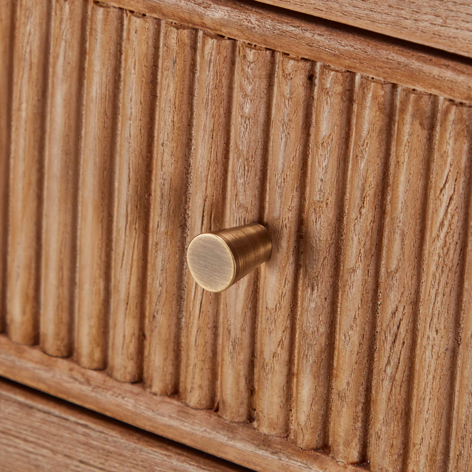 Linea 2 Drawer Elm Wood Console Table features refined design, where organic form meets architectural precision. Its long rectangular, open silhouette is defined by its large opening towards the base, creating a sense of visual lightness. The soft edges and soft ribbed textured elm wood surface reveals the material’s inherent character and charm.