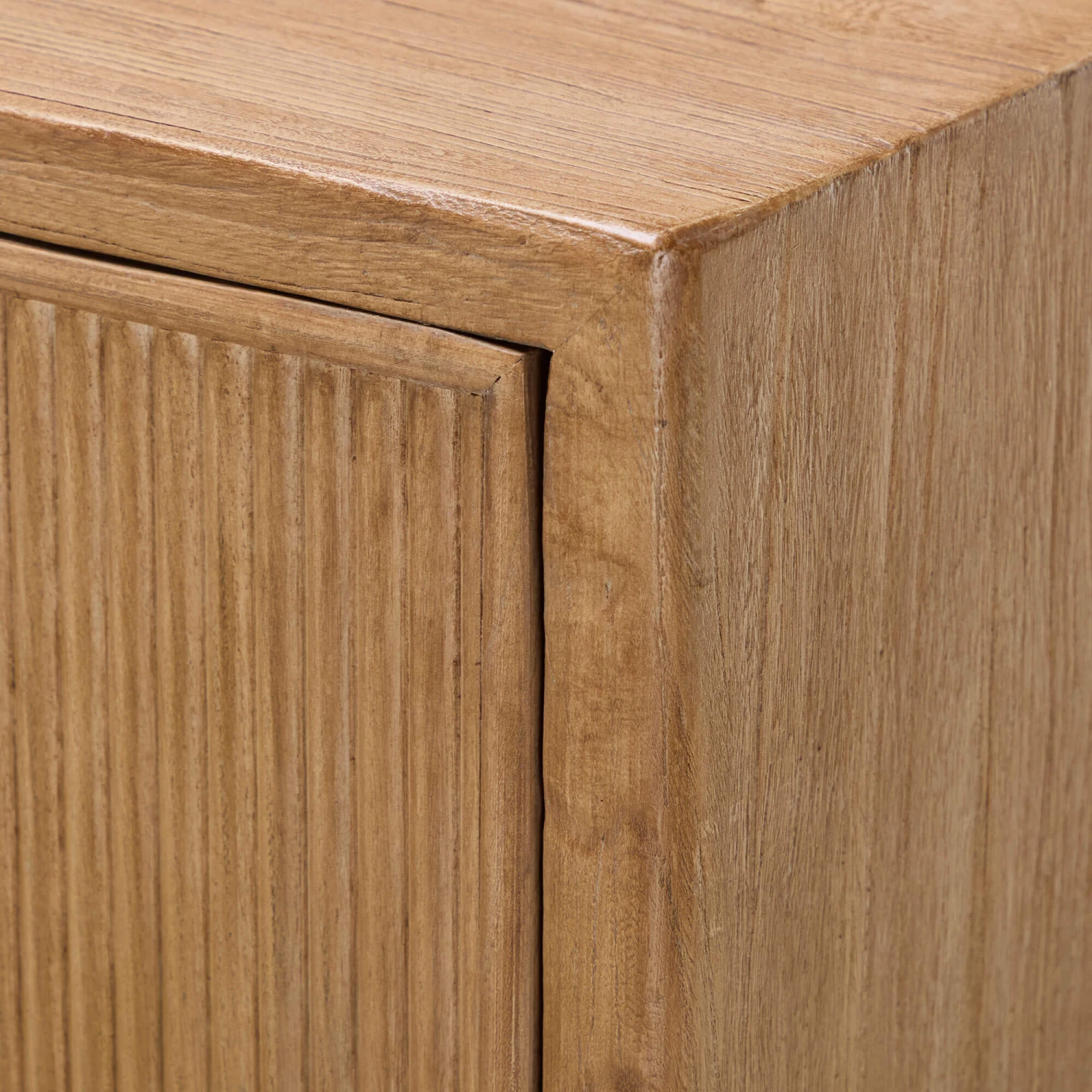 Linea 3 Drawer Elm Wood Sideboard features refined design, where organic form meets architectural precision. The soft edges and soft ribbed textured elm wood surface reveals the material’s inherent character and charm.
