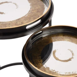 Libra Starburst Silver & Gold Nest Of 2 Semi-Circle Side Tables