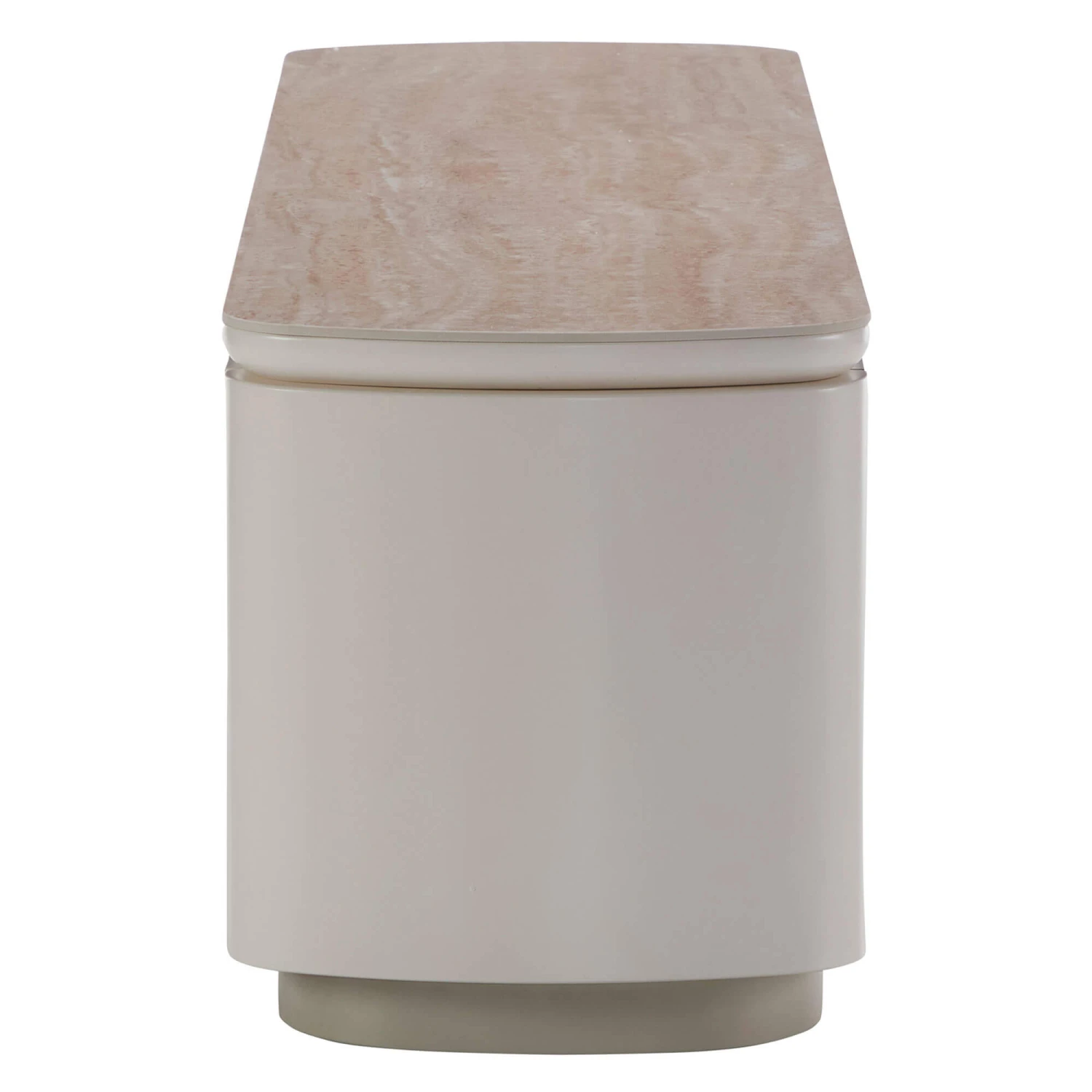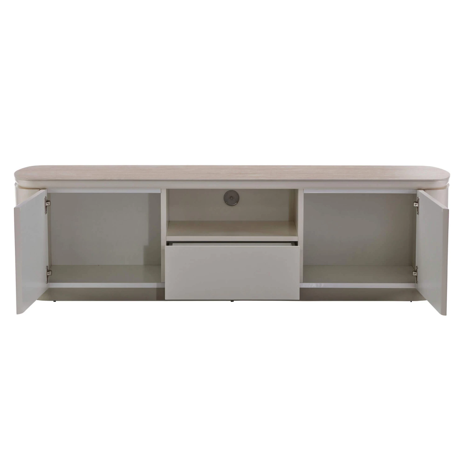 This Lorient 160cm TV Unit provides your living room with a classy, contemporary look. The top of the unit is made from a mix of MDF and travertine sintered stone to provide a very high quality and detailed finish. The body of the unit is made with MDF that is painted in a matte beige finish. This beautiful TV unit also contains two cabinets and one drawer so you can neatly store away items.